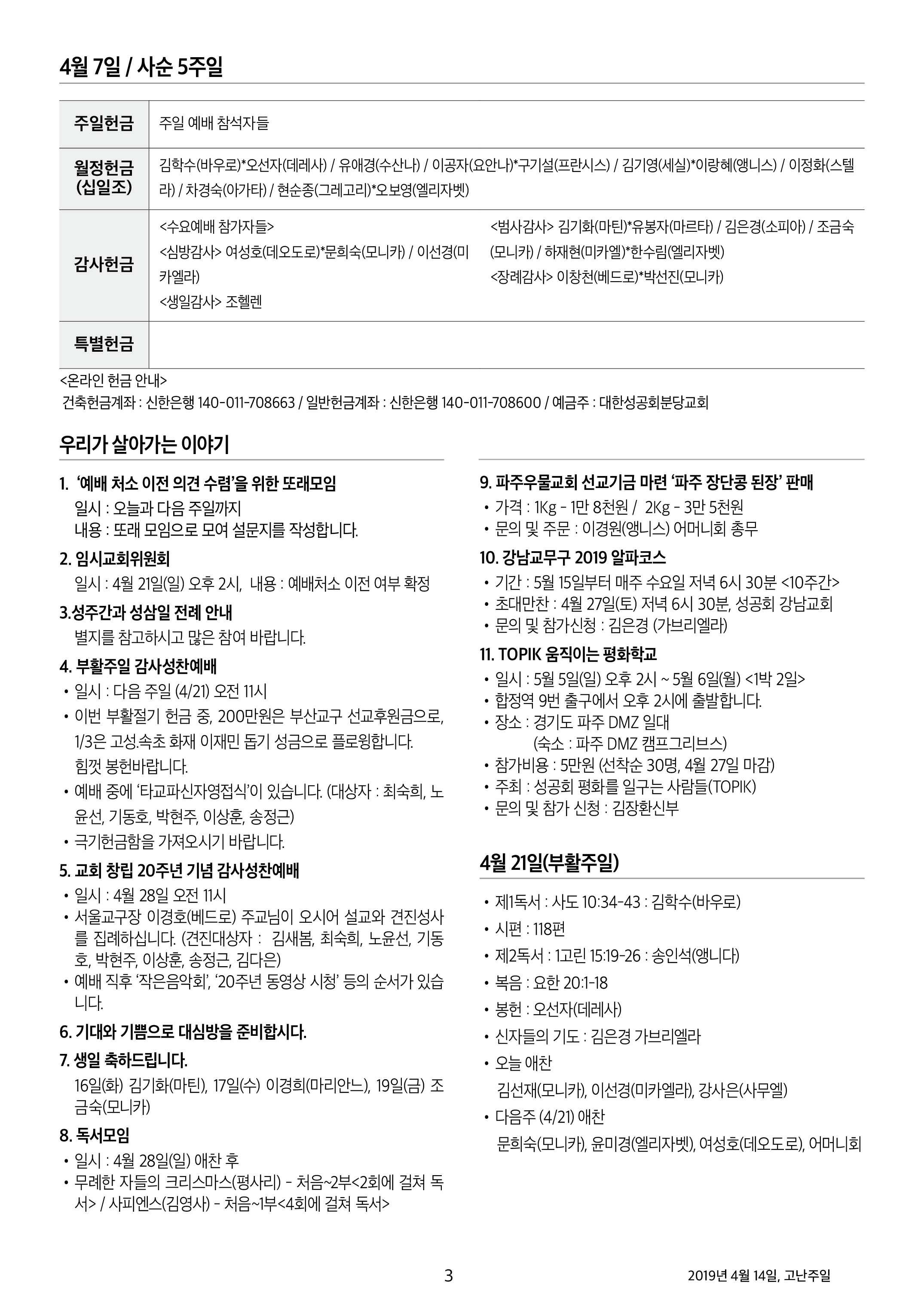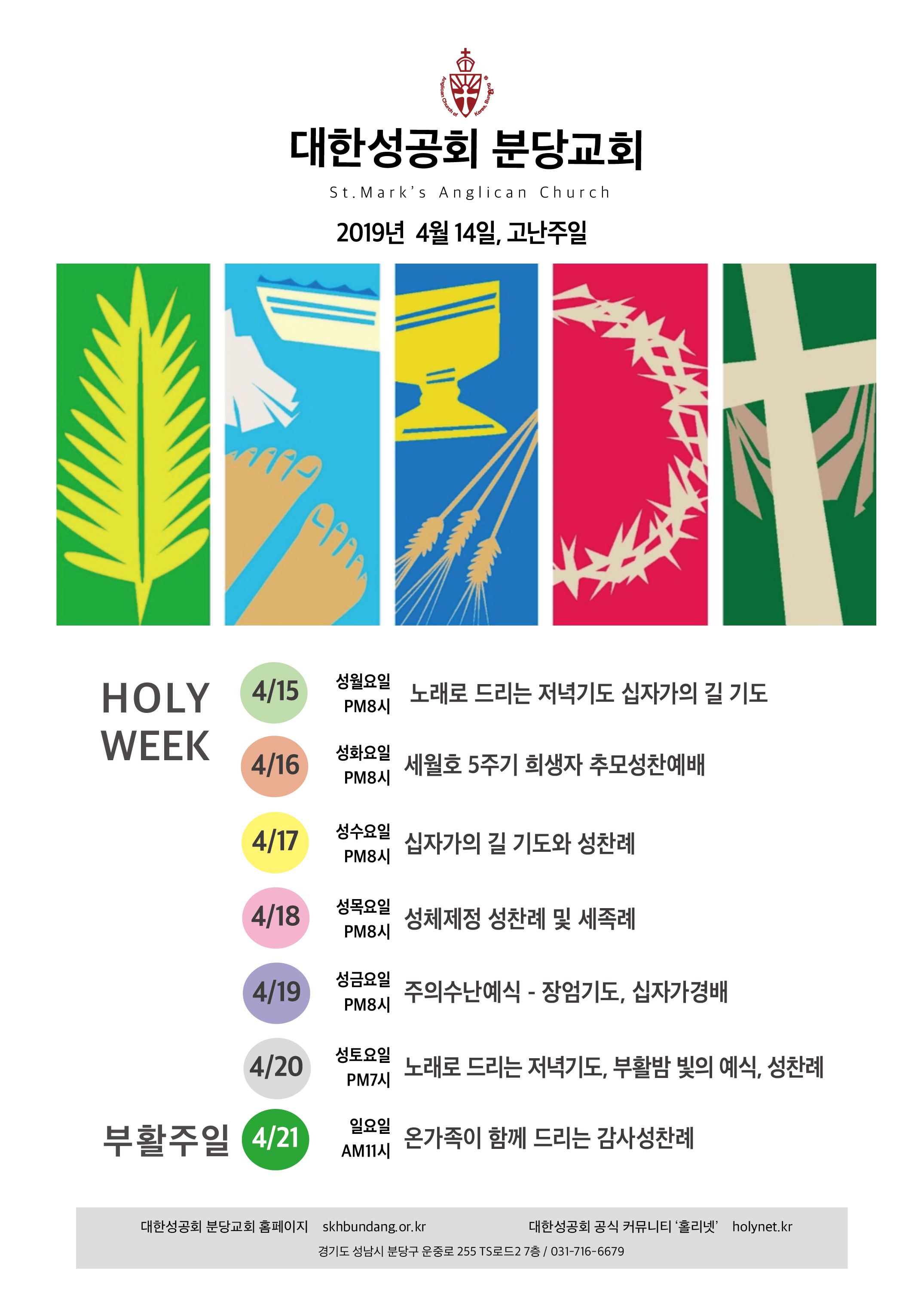 교회 주보 고난주일 by 분당교회 2019. 4. 15. 4월 14일, 고난주일 성공회 분당교회 주보 <표지> <고난주일 성지축복식> <광고> <전례> 공유하기 게시글 관리 대한성공회 분당교회 '교회 주보' 카테고리의 다른 글 교회창립기념주간, 부활2주일 (0) 2019.04.28 부활주일 (0) 2019.04.21 사순 5주일 (0) 2019.04.07 사순 4주일 (0) 2019.03.31 사순 3주일 (0) 2019.03.24 관련글 교회창립기념주간, 부활2주일 부활주일 사순 5주일 사순 4주일 댓글