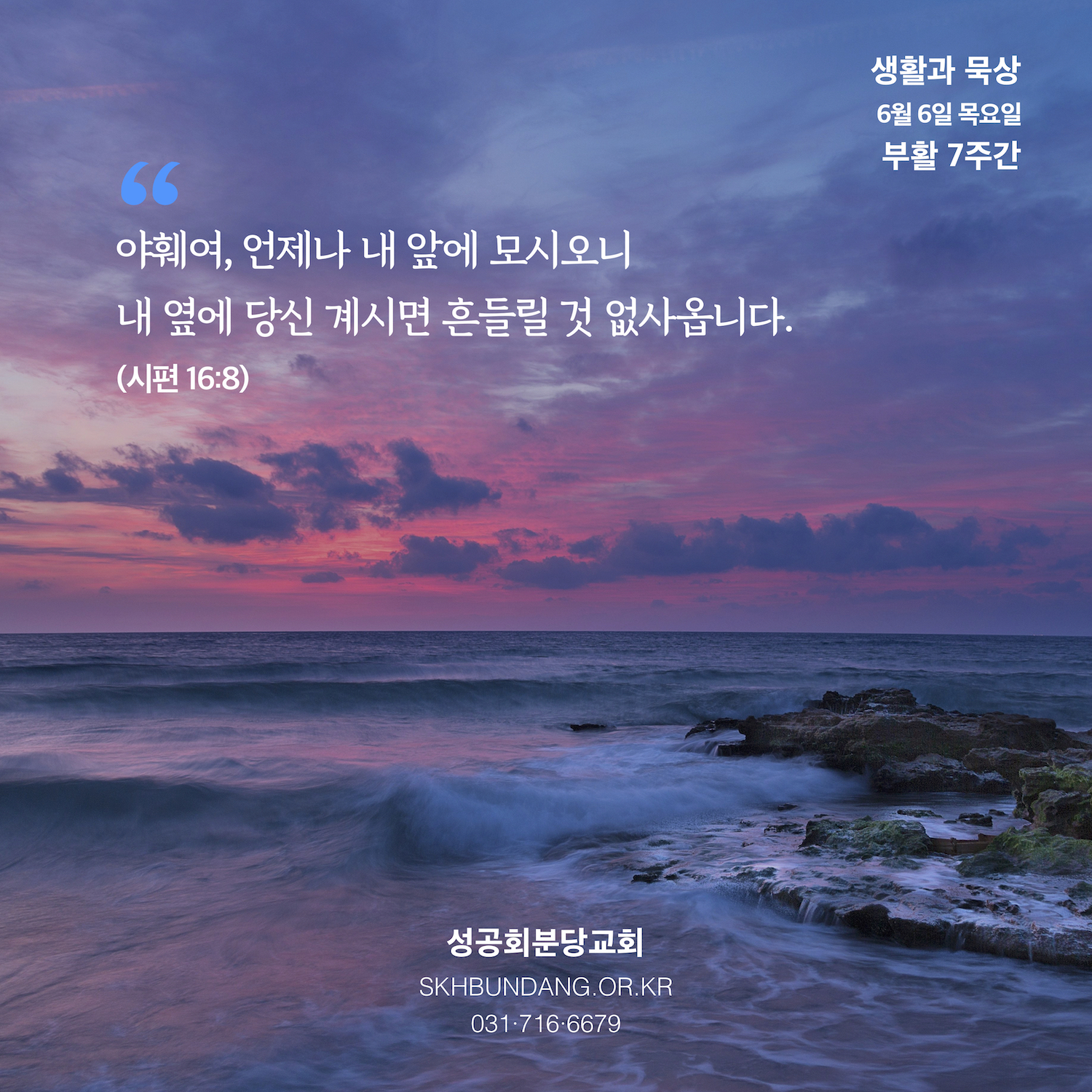 7 좋은 생각 주시는 야훼님 찬미하오니 밤에도 좋은 생각 반짝입니다.