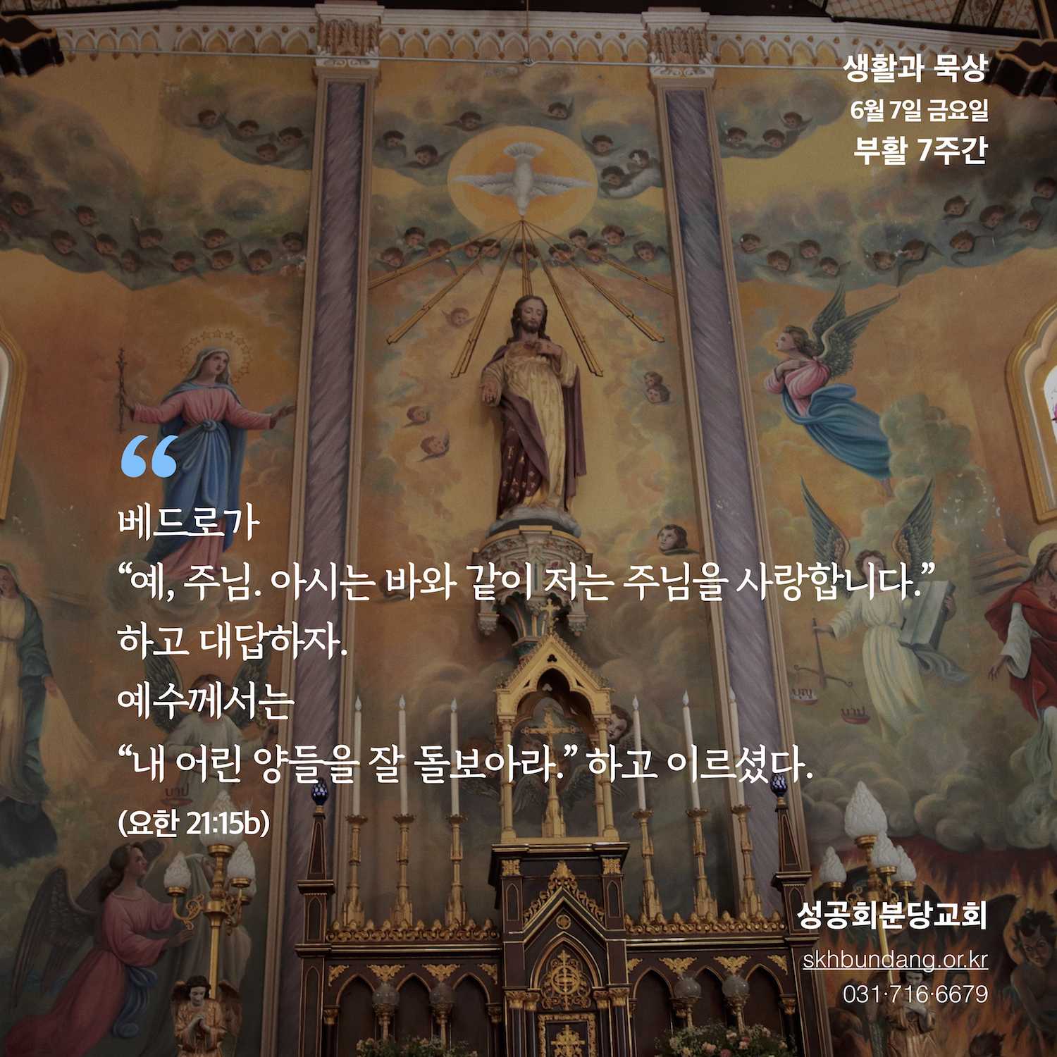 17 예수께서 세 번째로 "요한의 아들 시몬아, 네가 나를 사랑하느냐?" 하고 물으시자 베드로는 세 번이나 예수께서 "나를 사랑하느냐?" 하고 물으시는 바람에 마음이 슬퍼졌다. 그러나 "주님, 주님께서는 모든 일을 다 알고 계십니다. 그러니 제가 주님을 사랑한다는 것을 모르실 리가 없습니다." 하고 말하였다. 그러자 예수께서 "내 양들을 잘 돌보아라." 하고 분부하셨다.