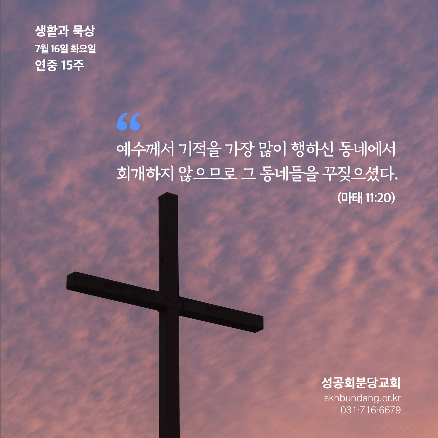 제가 바로 주님께서 기적을 가장 많이 행하신 동네였습니다. 오늘 하루도 주님의 손길을, 주님의 기적을 잊지 않길 기도해 봅니다.