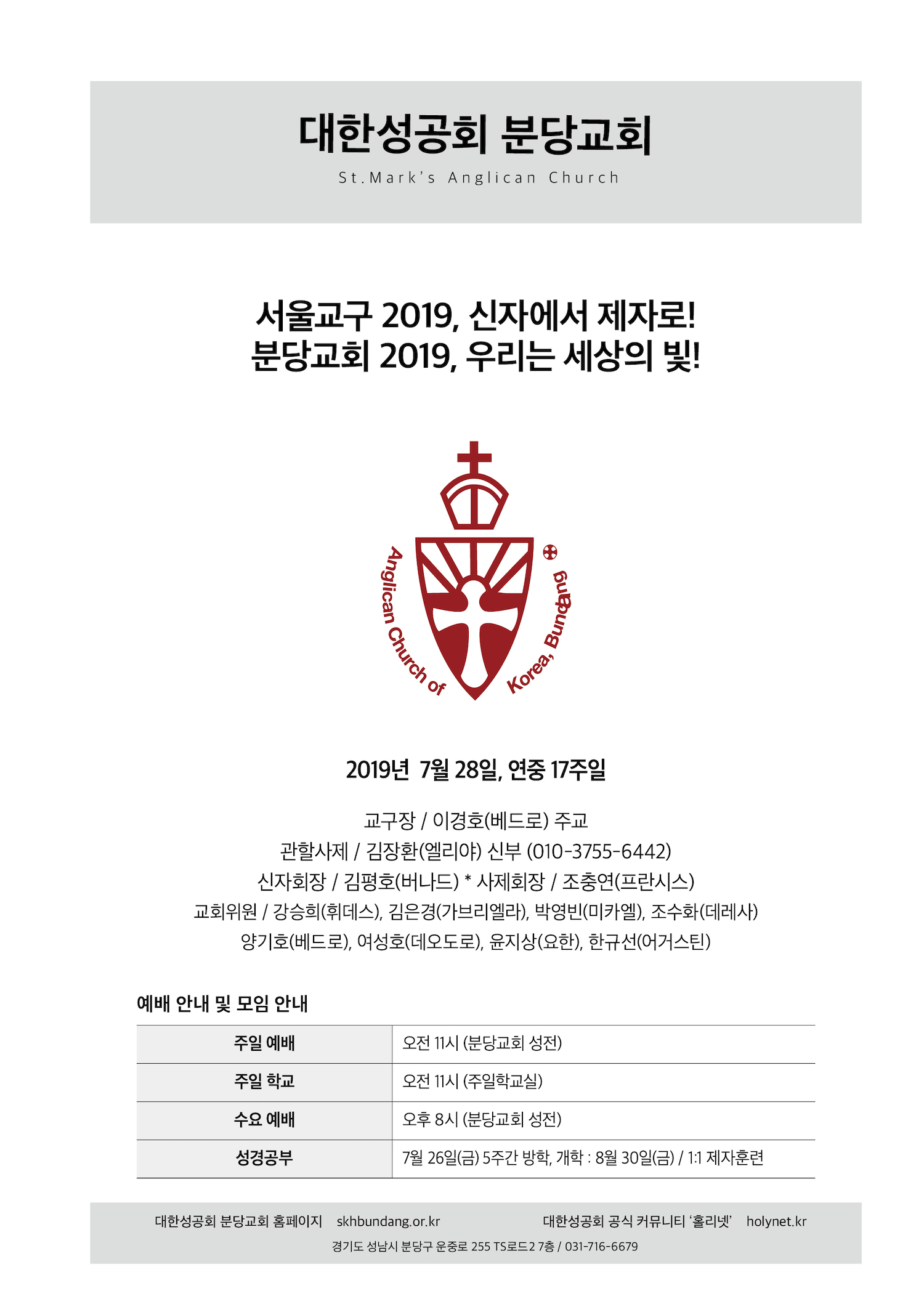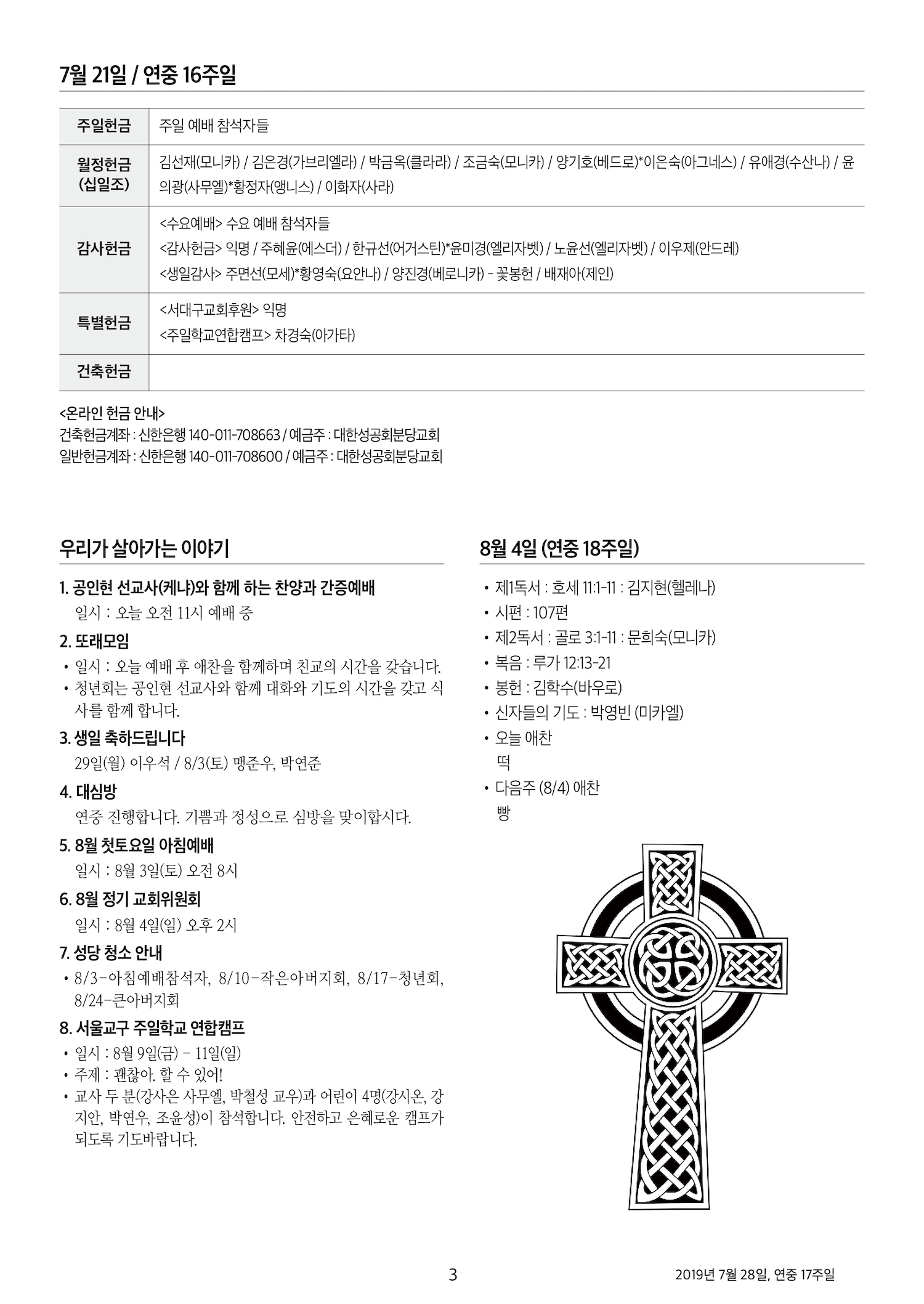 교회 주보 연중 17주일 by 분당교회 2019. 7. 28. 2019년 7월 28일 / 연중 17주일 성공회분당교회 교회주보 공유하기 게시글 관리 대한성공회 분당교회 '교회 주보' 카테고리의 다른 글 연중 19주일, 평화통일기도주일 (0) 2019.08.11 연중 18주일 (0) 2019.08.04 연중 16주일 (0) 2019.07.21 연중 15주일 (0) 2019.07.14 연중 14주일 (0) 2019.07.07 관련글 연중 19주일, 평화통일기도주일 연중 18주일 연중 16주일 연중 15주일 댓글