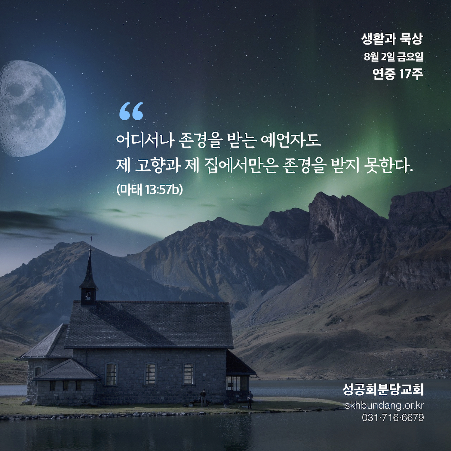 57. 예수를 도무지 믿으려 하지 않았다. 예수께서는 그들에게 “어디서나 존경을 받는 예언자도 제 고향과 제 집에서만은 존경을 받지 못한다.” 하고 말씀하셨다.