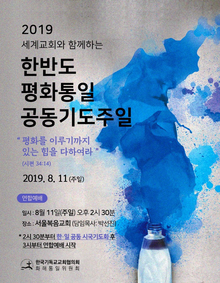 주님, 백두에서 한라를 지나는 오늘의 이 기도가 전 세계에 울려 퍼져 지나는 길목마다 남과 북/북과 남 그리스도인들의 숨결이 평화와 통일의 기운으로 되살아나게 하소서.