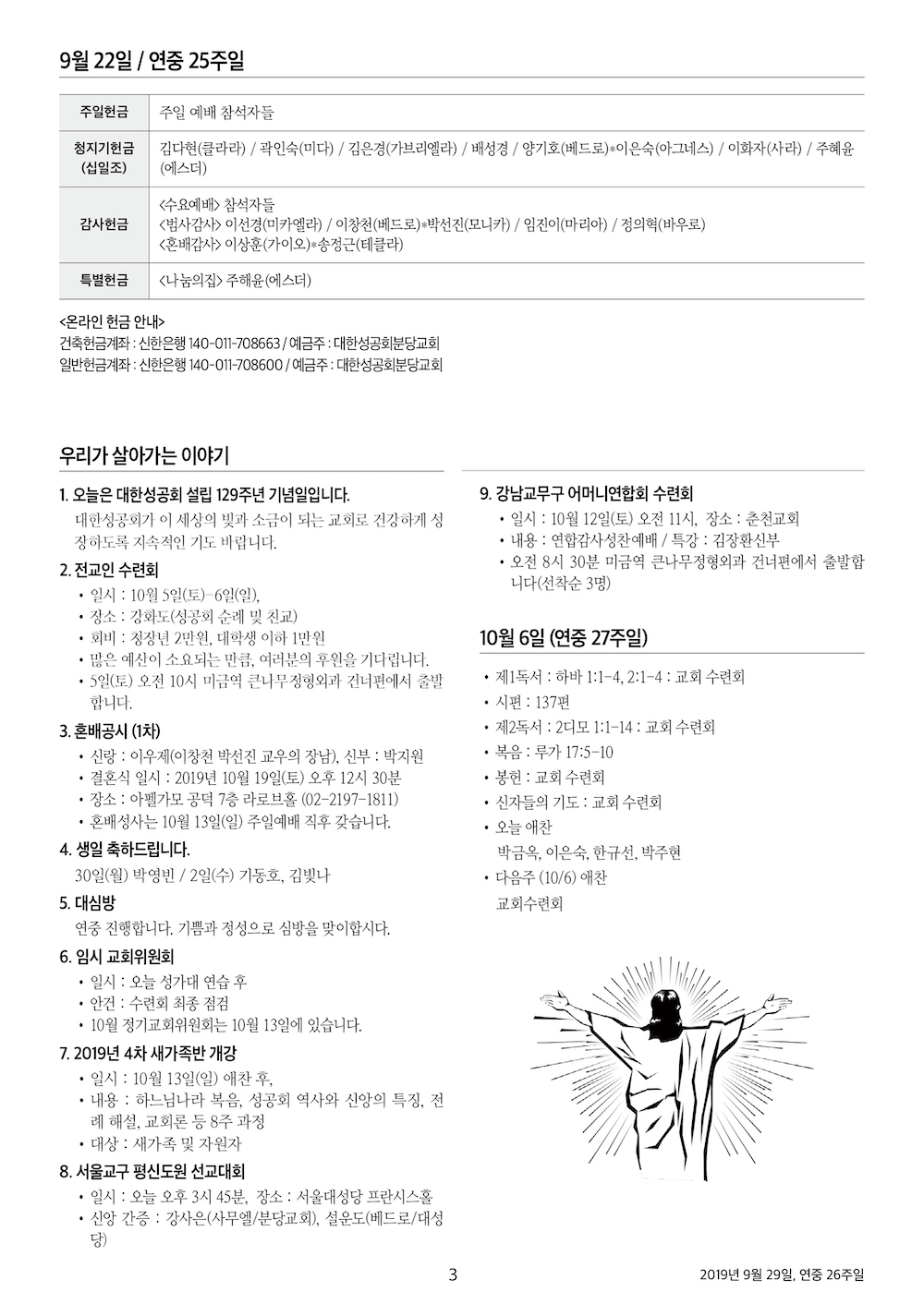 교회 주보 연중 26주일 by 분당교회 2019. 9. 29. 2019년 9월 29일, 연중 26주일 성공회 분당교회 주보 공유하기 게시글 관리 대한성공회 분당교회 '교회 주보' 카테고리의 다른 글 연중 28주일 (0) 2019.10.13 연중 27주일 (0) 2019.10.06 연중 25주일 (0) 2019.09.22 연중 24주일, 희년실천주간 (0) 2019.09.15 연중 23주일 (0) 2019.09.08 관련글 연중 28주일 연중 27주일 연중 25주일 연중 24주일, 희년실천주간 댓글