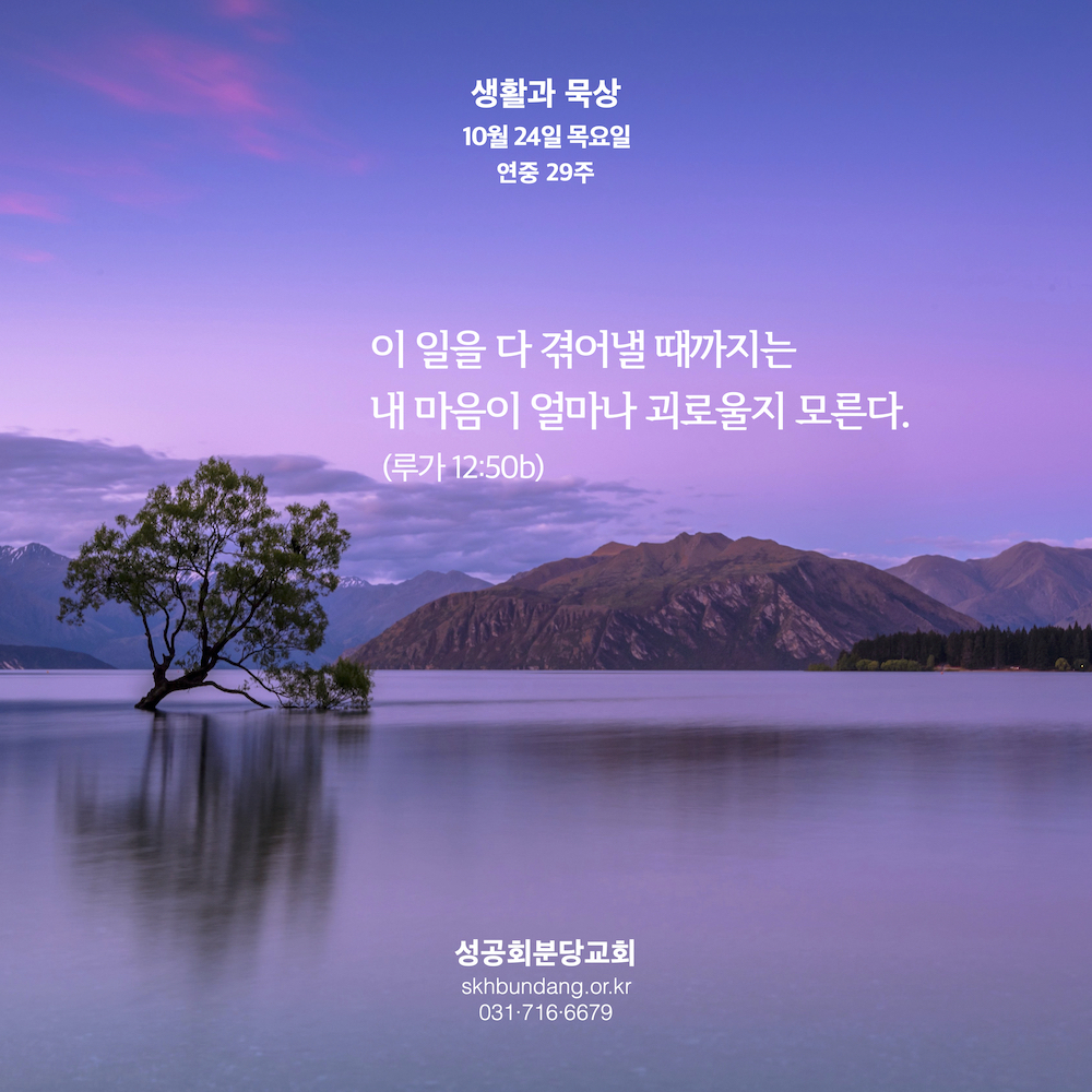50 내가 받아야 할 세례가 있다. 이 일을 다 겪어낼 때까지는 내 마음이 얼마나 괴로울지 모른다.