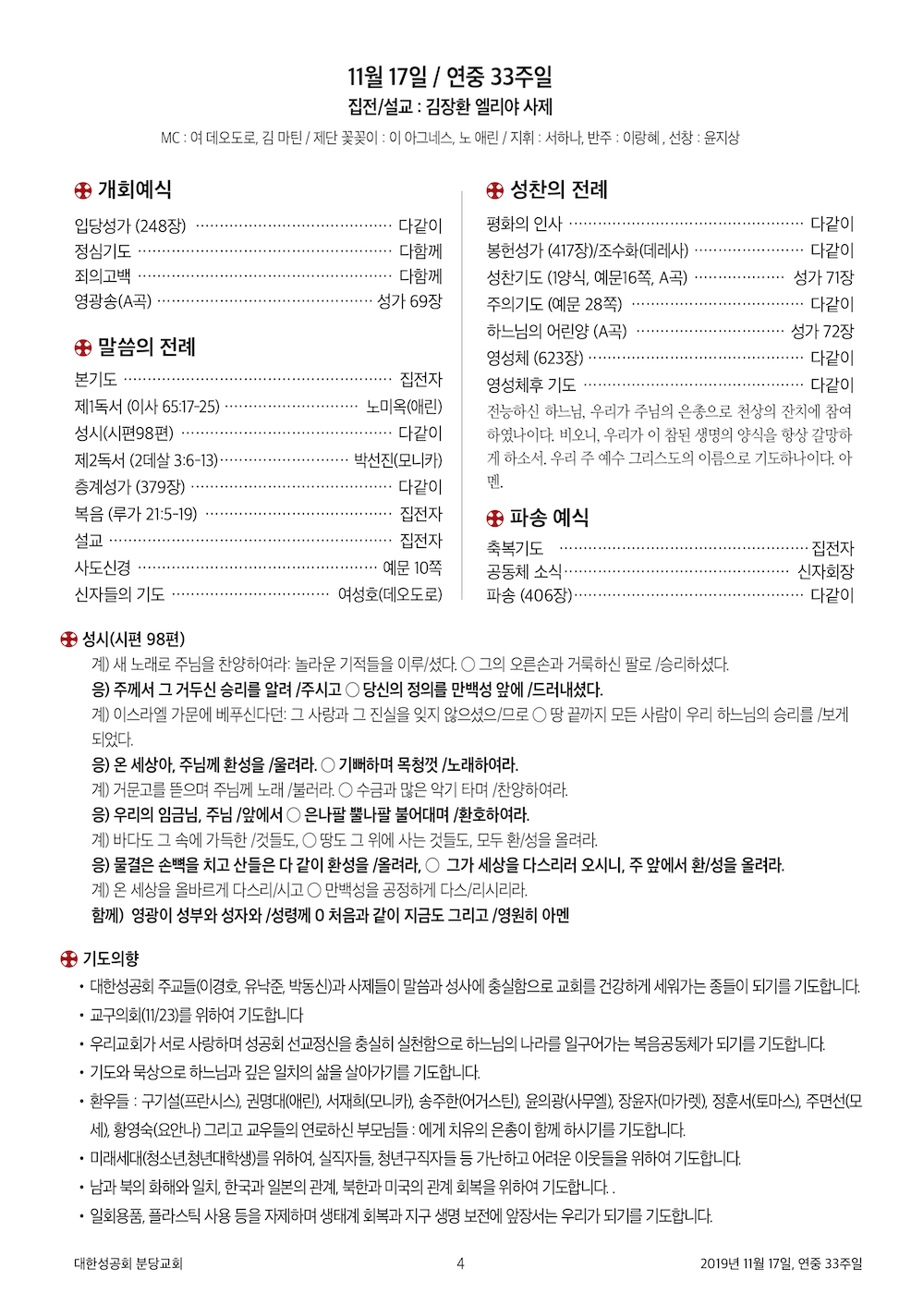 교회 주보 연중 33주일 by 분당교회 2019. 11. 17. 2019년 11월 17일, 연중 33주일성공회 분당교회 주보 공유하기 게시글 관리 대한성공회 분당교회 '교회 주보' 카테고리의 다른 글 대림 1주일 (0) 2019.12.01 왕이신 그리스도 주일 (0) 2019.11.24 연중 32주일 (0) 2019.11.10 추수감사주일 (0) 2019.11.03 연중 30주일 (0) 2019.10.27 관련글 대림 1주일 왕이신 그리스도 주일 연중 32주일 추수감사주일 댓글
