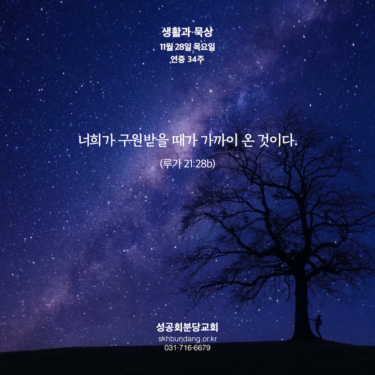 처음엔 그저 주님을 알아가는 것이 기뻤던 것처럼 좀 더 주님 가까이에서 더 마음 아파하고 염려하는 주님을 알아가는 기쁨을 누리고 싶습니다. 그리하여 사람의 아들이 구름을 타고 권능을 떨치며 영광에 싸여 오시는 것을 알아볼 수 있는 제가 되게 해달라고 기도합니다. 그리고 그 기도를 몸으로 할 수 있게 해달라고 또 기도합니다.