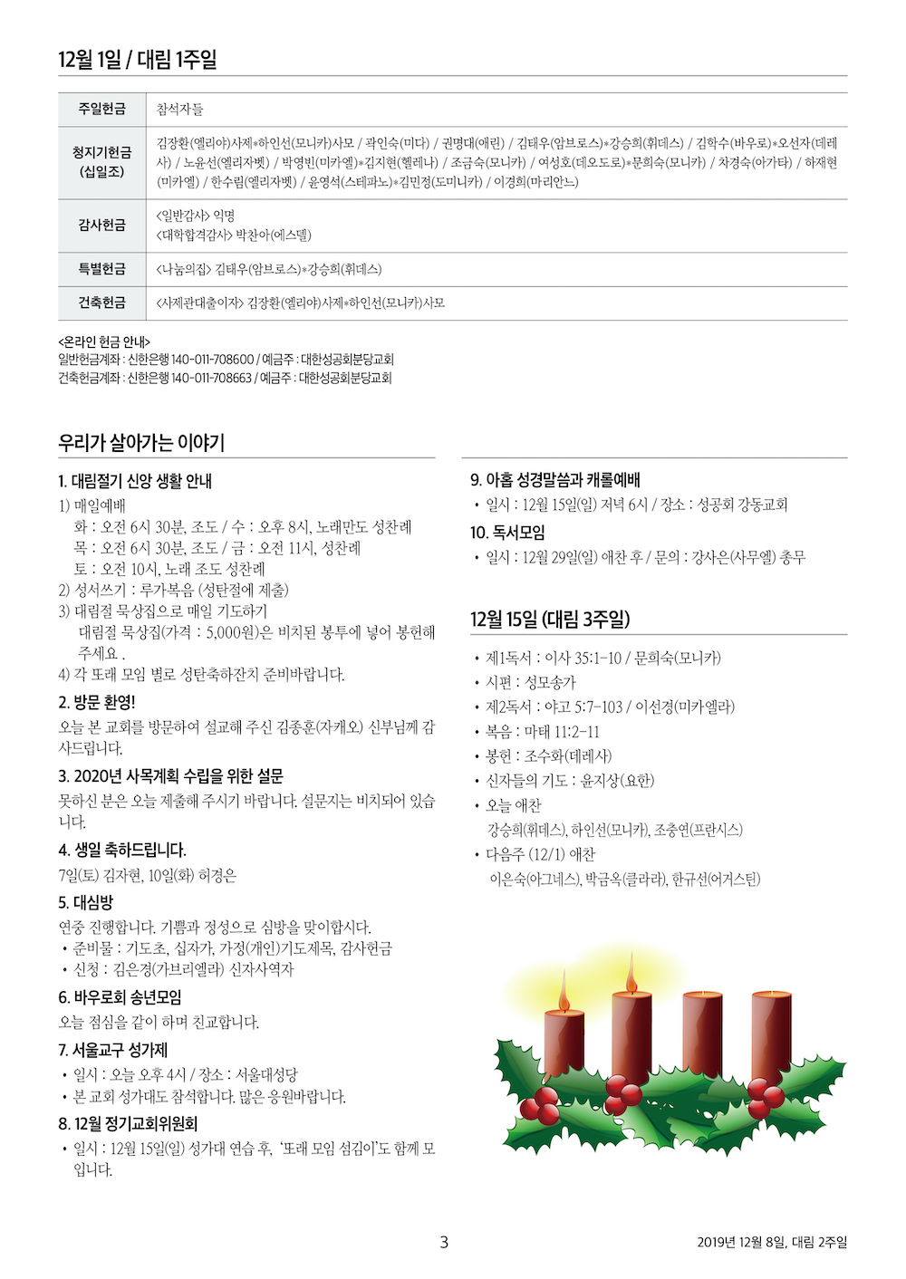 교회 주보 대림 2주일 by 분당교회 2019. 12. 8. 2019년 12월 8일, 대림 2주일성공회 분당교회 주보 공유하기 게시글 관리 대한성공회 분당교회 '교회 주보' 카테고리의 다른 글 대림 4주일 (0) 2019.12.22 대림 3주일 (0) 2019.12.15 대림 1주일 (0) 2019.12.01 왕이신 그리스도 주일 (0) 2019.11.24 연중 33주일 (0) 2019.11.17 관련글 대림 4주일 대림 3주일 대림 1주일 왕이신 그리스도 주일 댓글