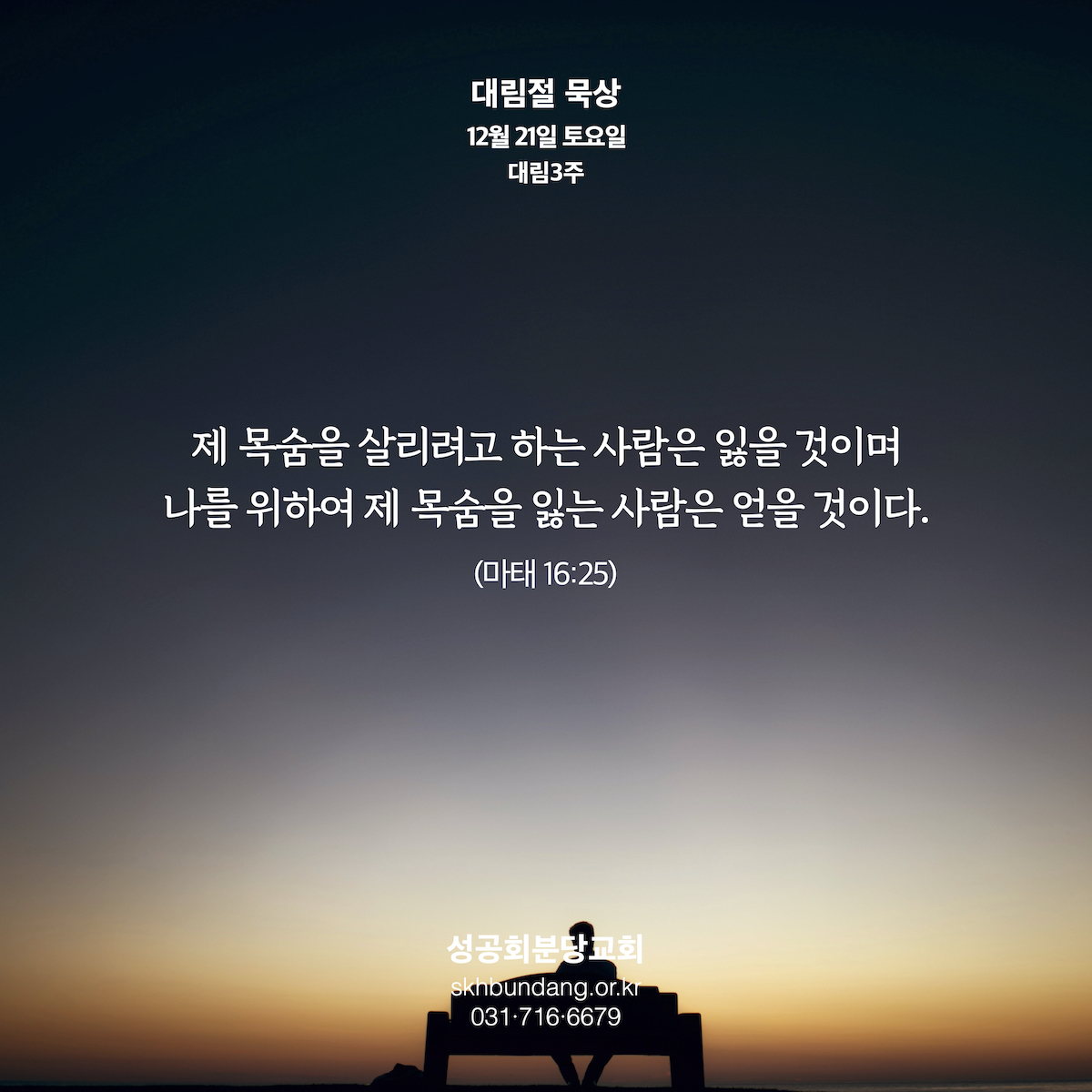 25 제 목숨을 살리려고 하는 사람은 잃을 것이며 나를 위하여 제 목숨을 잃는 사람은 얻을 것이다.