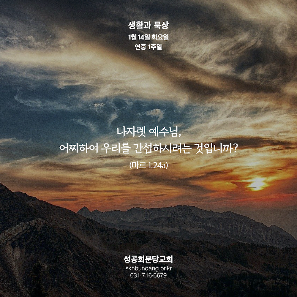 우리 삶에서 일어나는 불의하고 안타까운 일들에 대해서 더 참견하고, 간섭하며, 시비를 거는 우리가 되기를 기도합니다. 그래서 그 악령들이 우리에게도 똑같은 이야기를 했으면 좋겠습니다. '왜 당신은 우리에게 간섭하십니까?' 그렇다면 우리도 시원하게 외칠 수 있겠지요. 그 입 다물고 이 사람에게서, 이 세상에서 썩 꺼지라고.