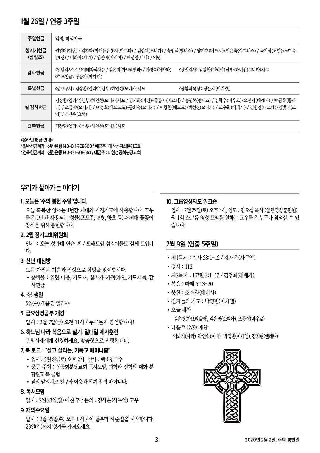 교회 주보 주의 봉헌일 by 분당교회 2020. 2. 2. 2020년 2월 2일, 주의 봉헌일성공회 분당교회 주보 공유하기 게시글 관리 대한성공회 분당교회 '교회 주보' 카테고리의 다른 글 연중 6주일 (0) 2020.02.16 연중 5주일 (0) 2020.02.09 연중 3주일 (0) 2020.01.26 연중 2주일 (0) 2020.01.19 주의 세례일 (0) 2020.01.12 관련글 연중 6주일 연중 5주일 연중 3주일 연중 2주일 댓글