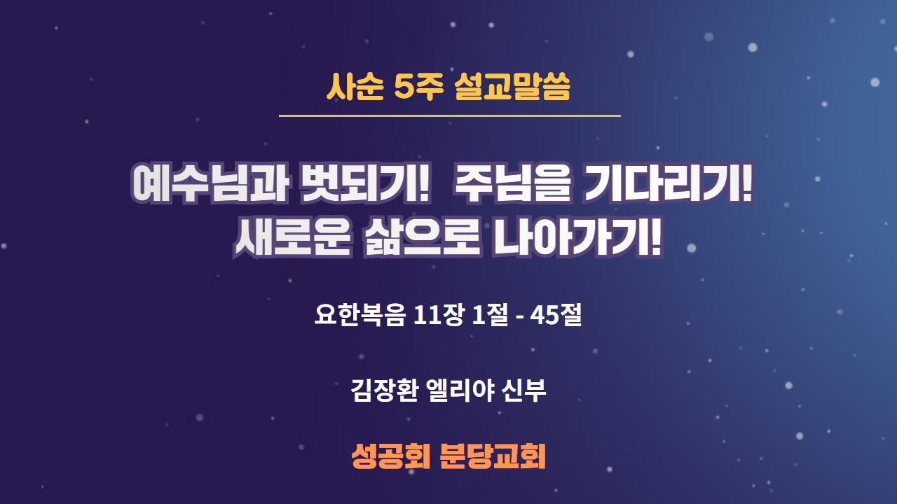 첫째, 11절에서 예수님이 라자로를 친구라고 부르는 말씀을 묵상했습니다. “우리 친구 라자로가 잠들어 있으니 이제 내가 가서 깨워야 겠다.”