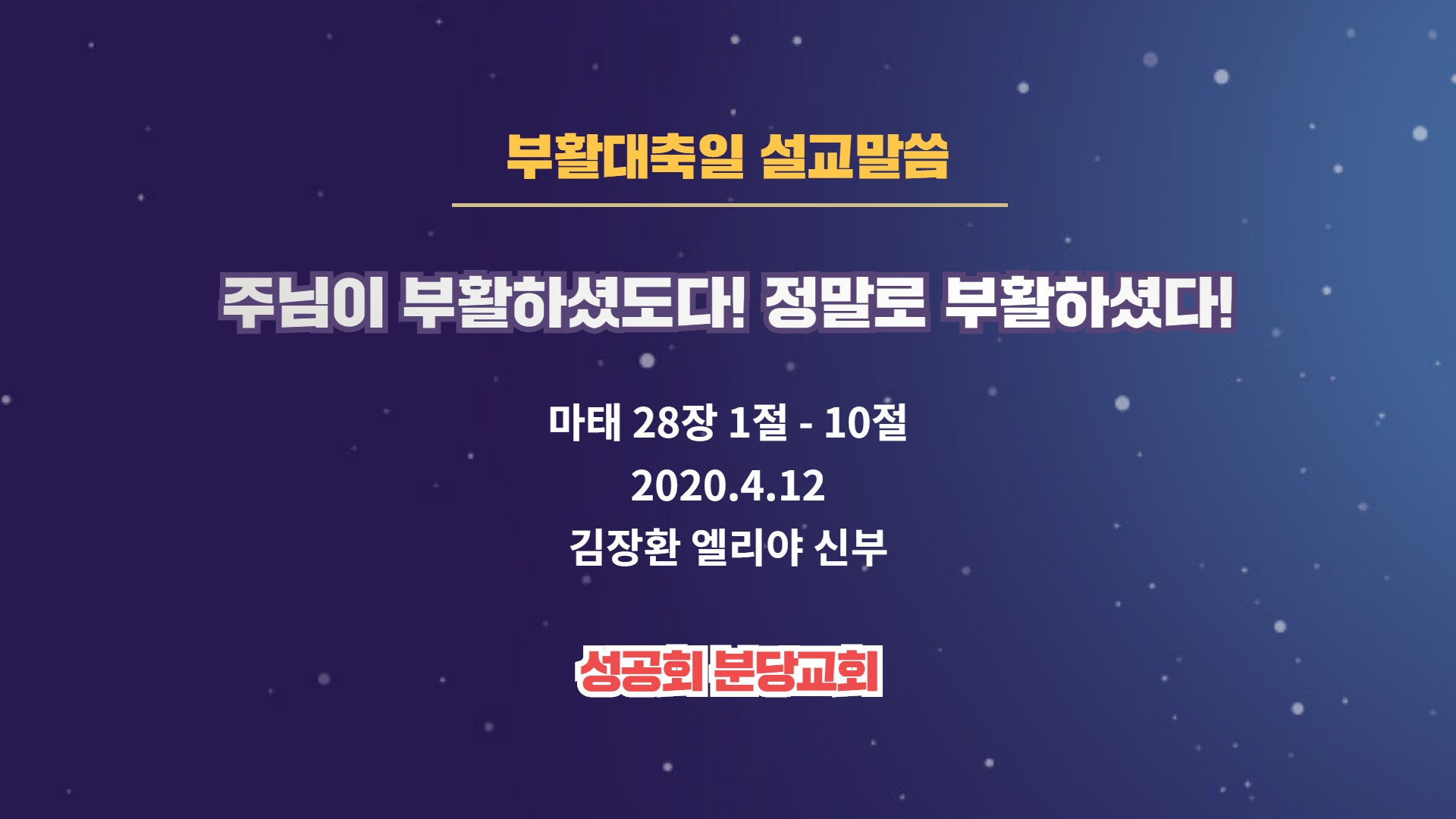 부활의 인사부터 다시 나눕니다. 제가 “주님이 부활하셨도다!” 외치면, “정말로 부활하셨도다!”라고 답해 주세요. 주님이 부활하셨도다! 정말로 부활하셨도다!