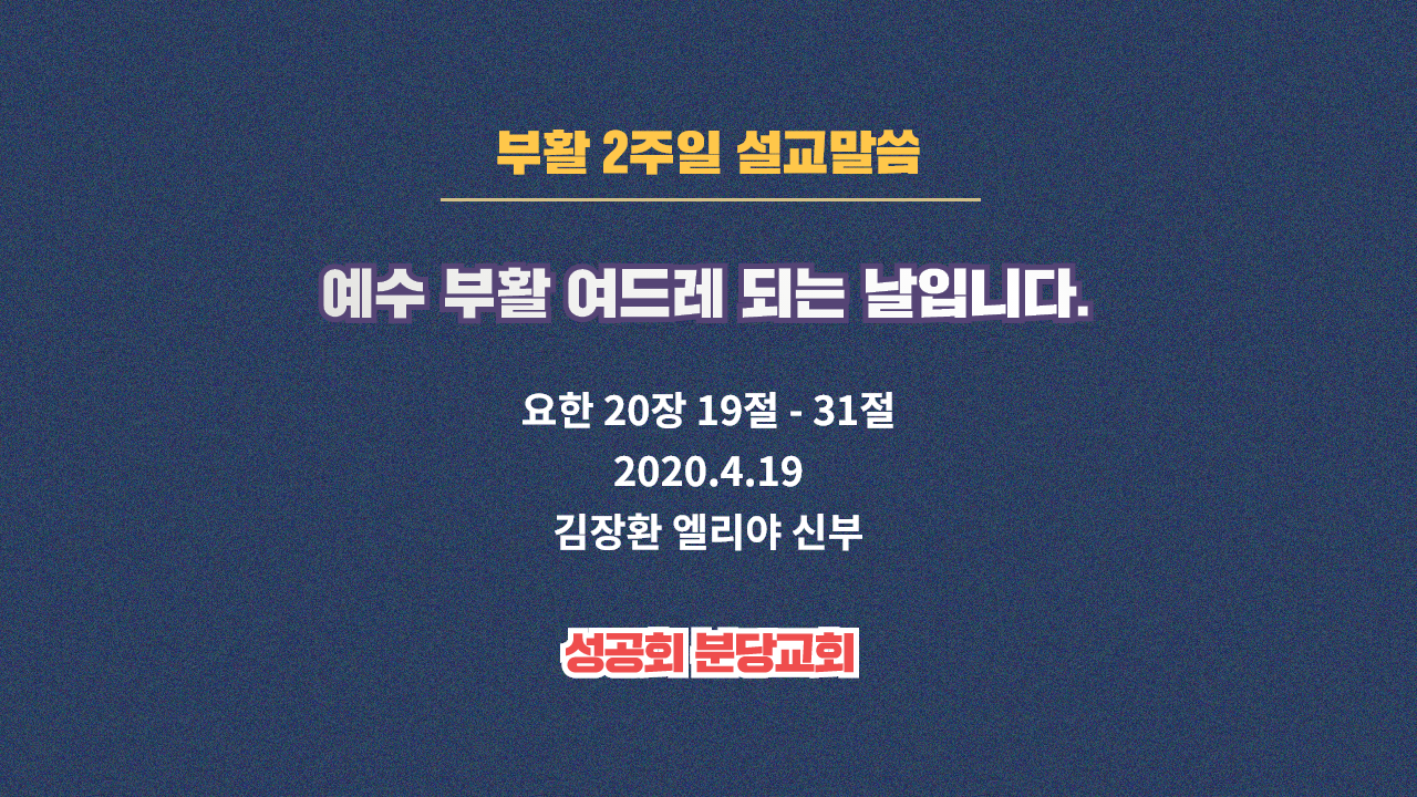 2020년 4월 19일 부활 2주일 설교 말씀