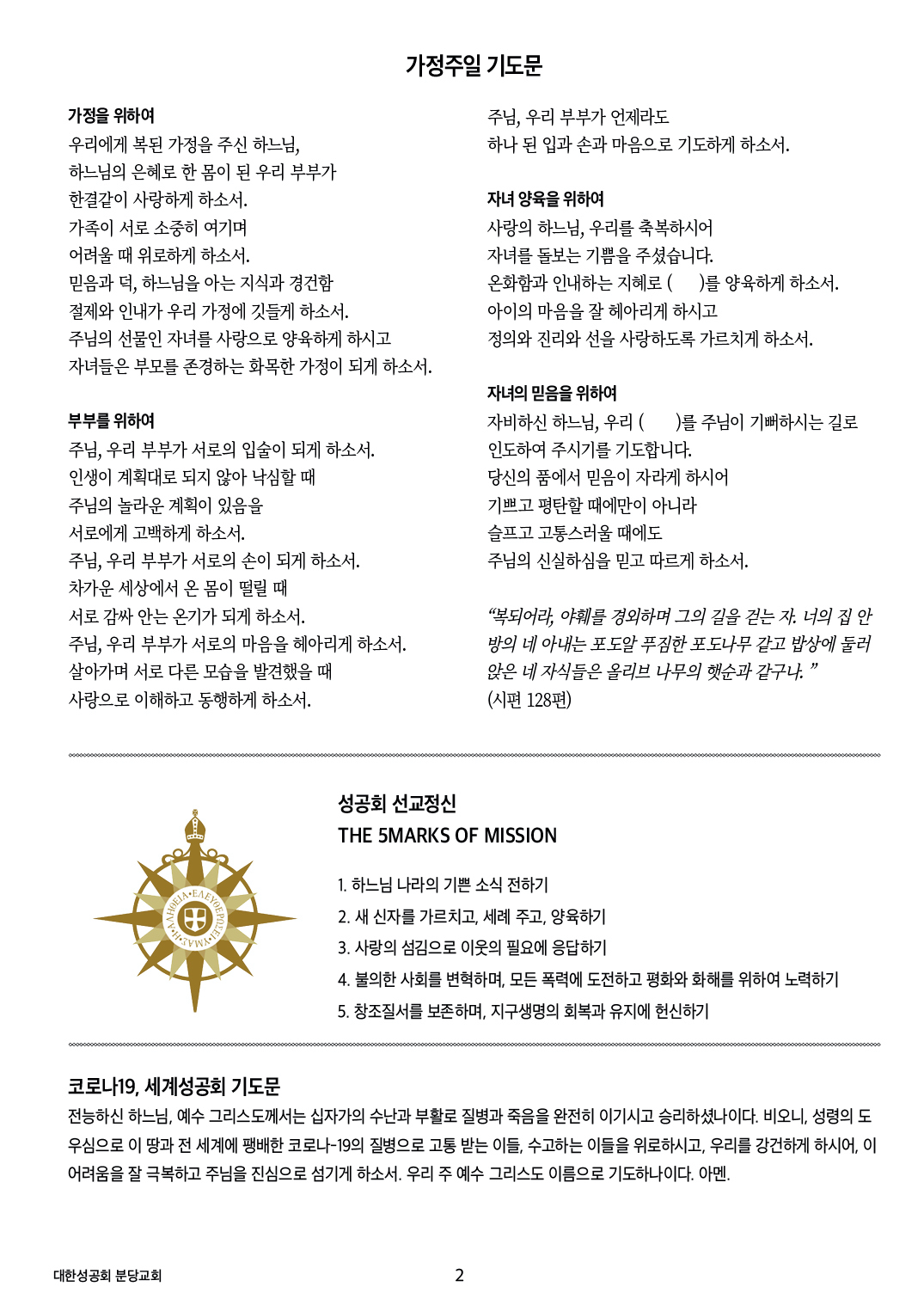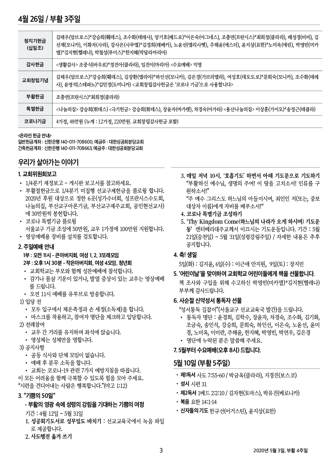교회 주보 부활 4주일 (가정주일) by 분당교회 2020. 5. 3. 2020년 5월 3일, 부활 4주일 (가정주일) 성공회 분당교회 주보 공유하기 게시글 관리 대한성공회 분당교회 '교회 주보' 카테고리의 다른 글 부활 6주일 (0) 2020.05.17 부활 5주일 (0) 2020.05.12 부활 3주일 (0) 2020.04.26 부활 2주일 (0) 2020.04.19 부활대축일 (0) 2020.04.12 관련글 부활 6주일 부활 5주일 부활 3주일 부활 2주일 댓글