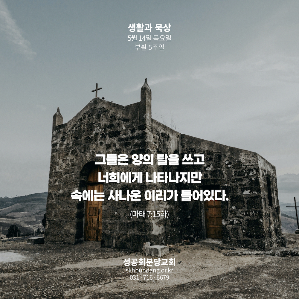 주님의 말씀을 실천한다는 것. 그것은 거친 선동이 아니라 여린 사랑이라 믿습니다 배제와 혐오가 아니라 인정과 이해로부터 비롯되는 것이라 믿습니다. 우리의 신앙이 좀더 여리고 약한 것에 대한 연민으로 가득 차 있다면, 세찬 풍랑이나 늑대의 선동 따위가 우리를 위협하지는 못 할 것입니다.
