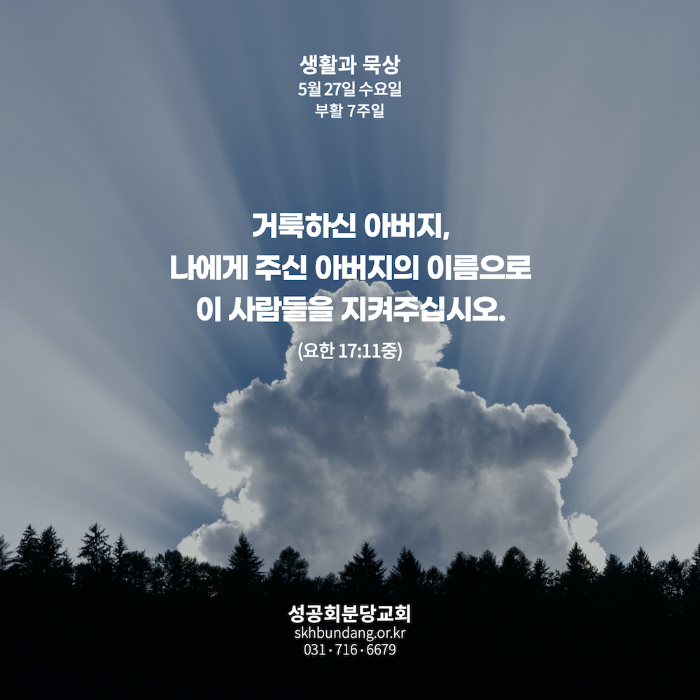 11 “나는 이제 세상을 떠나 아버지께 돌아가지만 이 사람들은 세상에 남아 있을 것입니다. 거룩하신 아버지, 나에게 주신 아버지의 이름으로 이 사람들을 지켜주십시오. 그리고 아버지와 내가 하나인 것처럼 이 사람들도 하나가 되게 하여주십시오.
