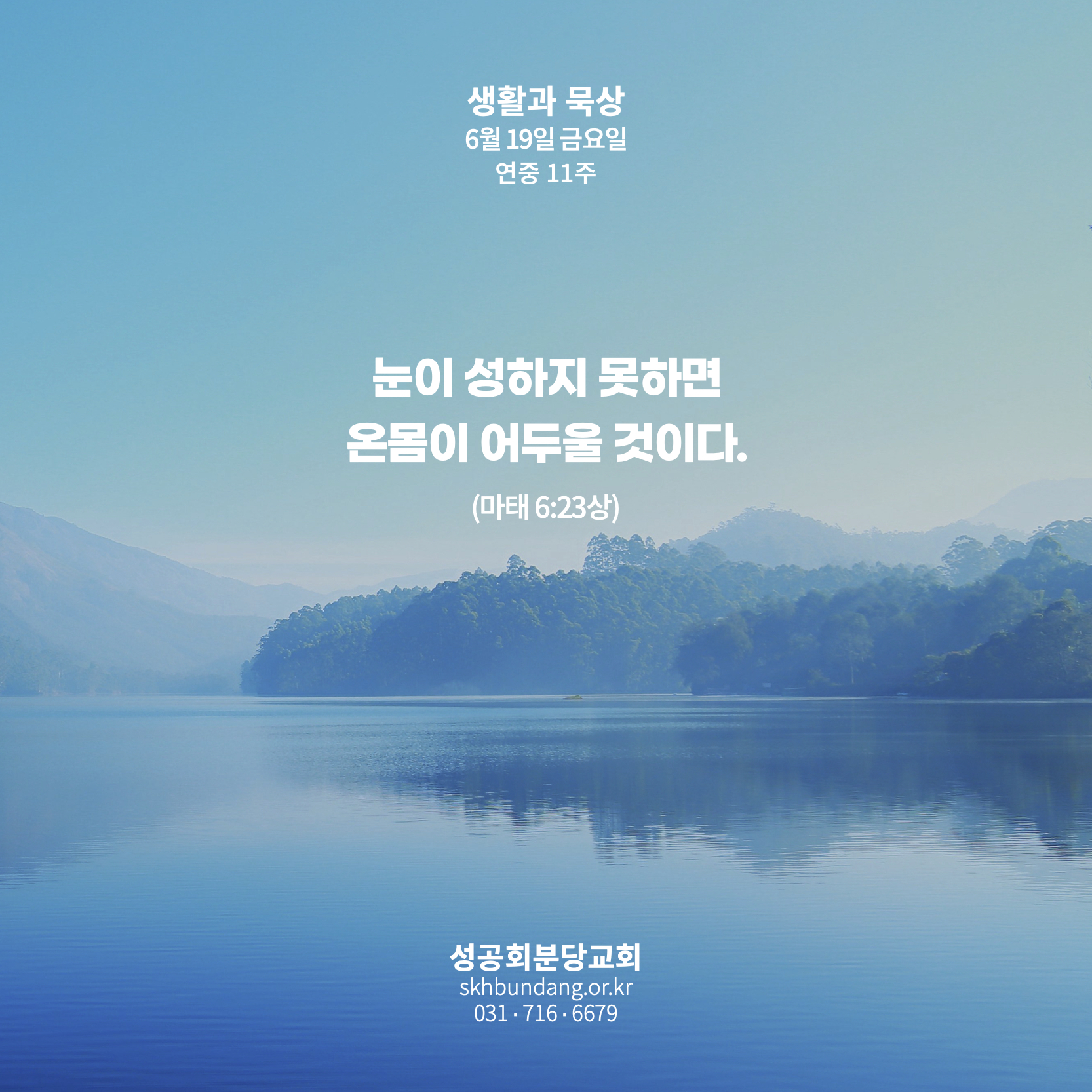 22 “눈은 몸의 등불이다. 그러므로 네 눈이 성하면 온몸이 밝을 것이며