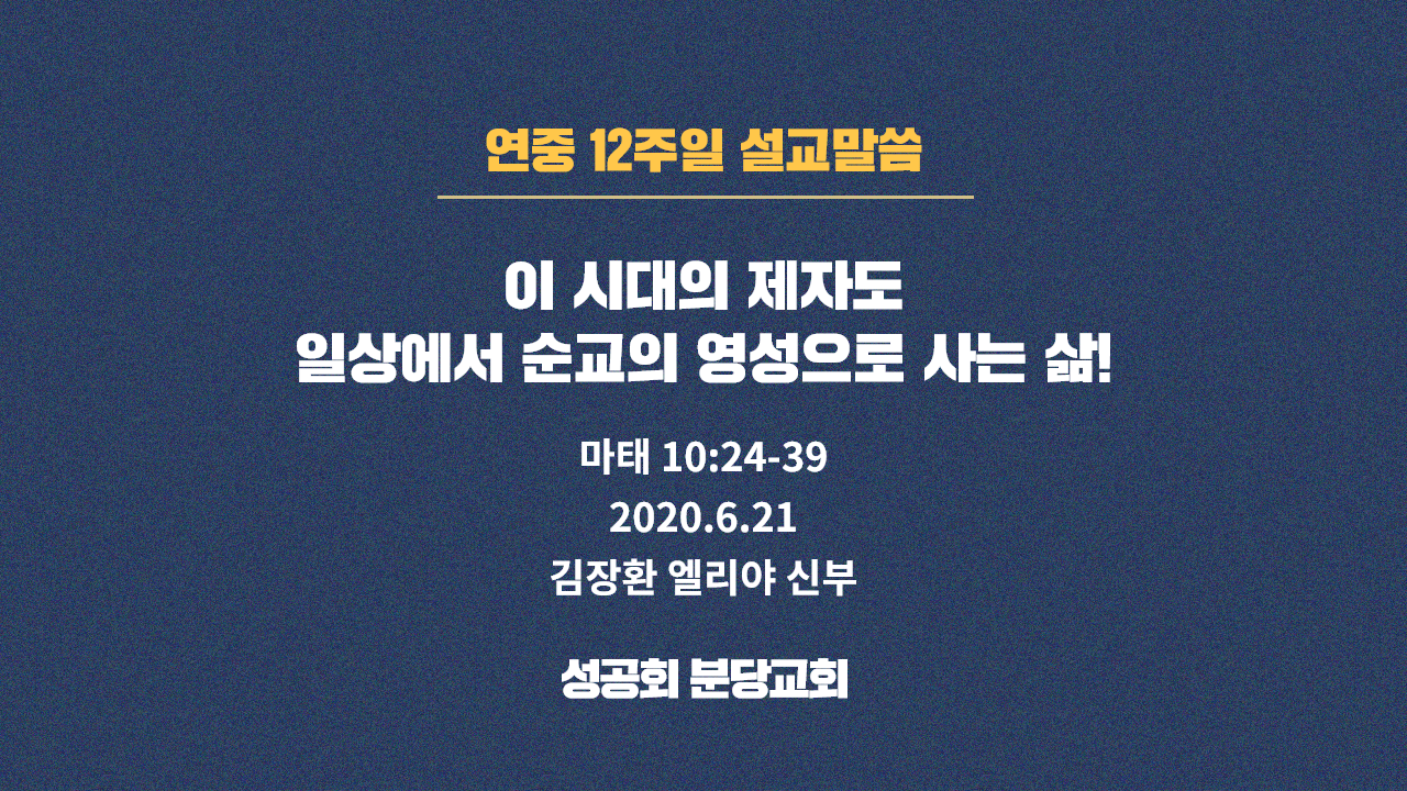 순교자 알반 기념일과 대한성공회 순교자들을 기억하게 되는 6.25 기념일이 있는 새로운 한 주간을 시작하는 오늘, 주님께서는 복음을 통해 이 시대 교회에 진정 필요한 것이 순교의 영성임을 말씀하시는 것 같습니다.
