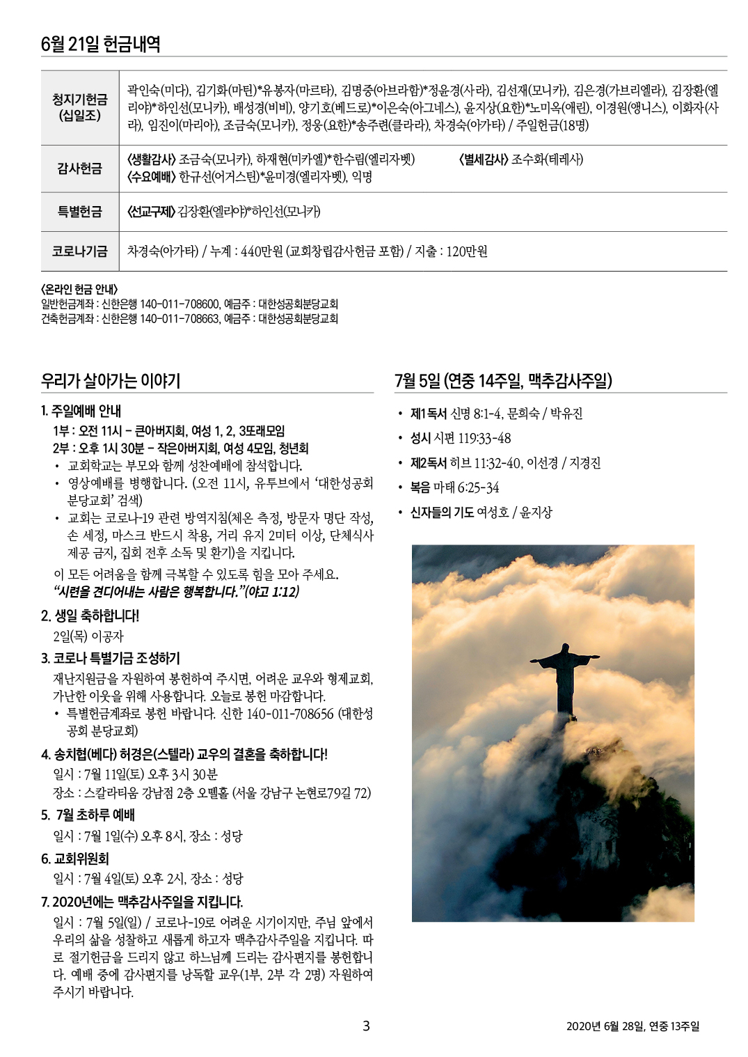 교회 주보 연중 13주일 by 분당교회 2020. 6. 28. 2020년 6월 28일, 연중 13주일 성공회 분당교회 주보 공유하기 게시글 관리 대한성공회 분당교회 '교회 주보' 카테고리의 다른 글 연중 15주일 (0) 2020.07.12 맥추감사주일 (0) 2020.07.05 연중 12주일 (0) 2020.06.21 연중 11주일 (0) 2020.06.14 성삼위일체주일 (0) 2020.06.07 관련글 연중 15주일 맥추감사주일 연중 12주일 연중 11주일 댓글