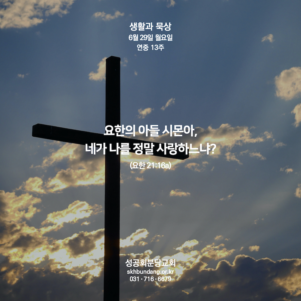 15 모두들 조반을 끝내자 예수께서 시몬 베드로에게 “요한의 아들 시몬아, 네가 이 사람들이 나를 사랑하는 것보다 더 나를 사랑하느냐?” 하고 물으셨다. 베드로가 “예, 주님. 아시는 바와 같이 저는 주님을 사랑합니다.” 하고 대답하자 예수께서는 “내 어린 양들을 잘 돌보아라.” 하고 이르셨다.