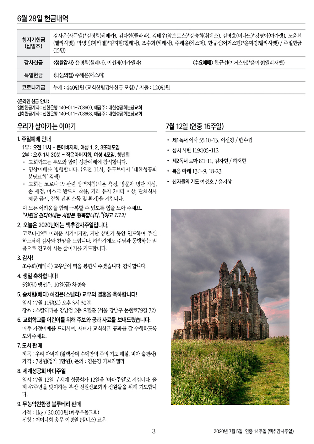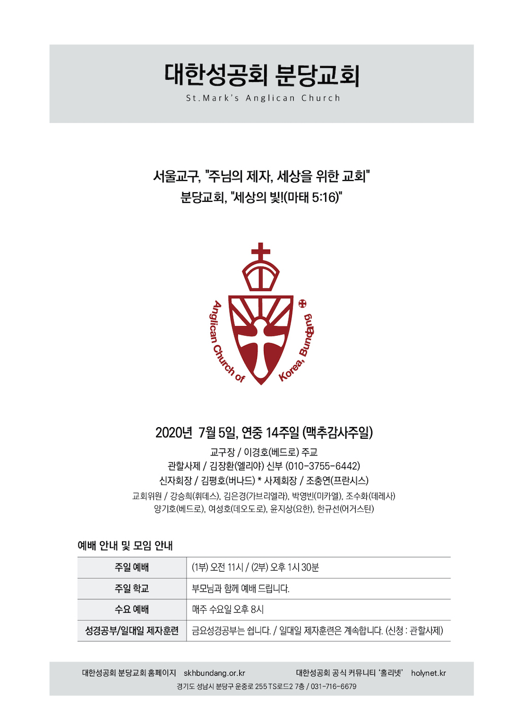 교회 주보 맥추감사주일 by 분당교회 2020. 7. 5. 2020년 7월 5일, 맥추감사주일 (연중 14주일) 성공회 분당교회 주보 공유하기 게시글 관리 대한성공회 분당교회 '교회 주보' 카테고리의 다른 글 연중 16주일 (0) 2020.07.19 연중 15주일 (0) 2020.07.12 연중 13주일 (0) 2020.06.28 연중 12주일 (0) 2020.06.21 연중 11주일 (0) 2020.06.14 관련글 연중 16주일 연중 15주일 연중 13주일 연중 12주일 댓글
