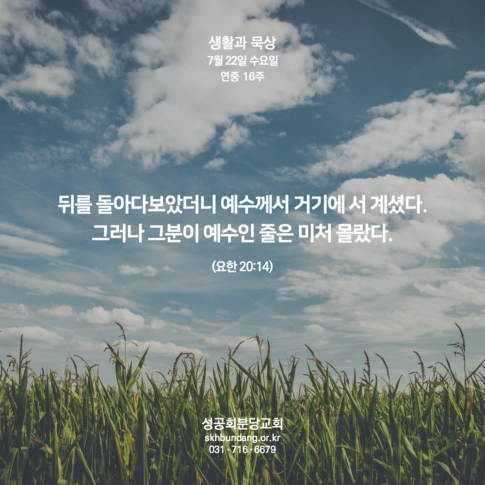 14 뒤를 돌아다보았더니 예수께서 거기에 서 계셨다. 그러나 그분이 예수인 줄은 미처 몰랐다.