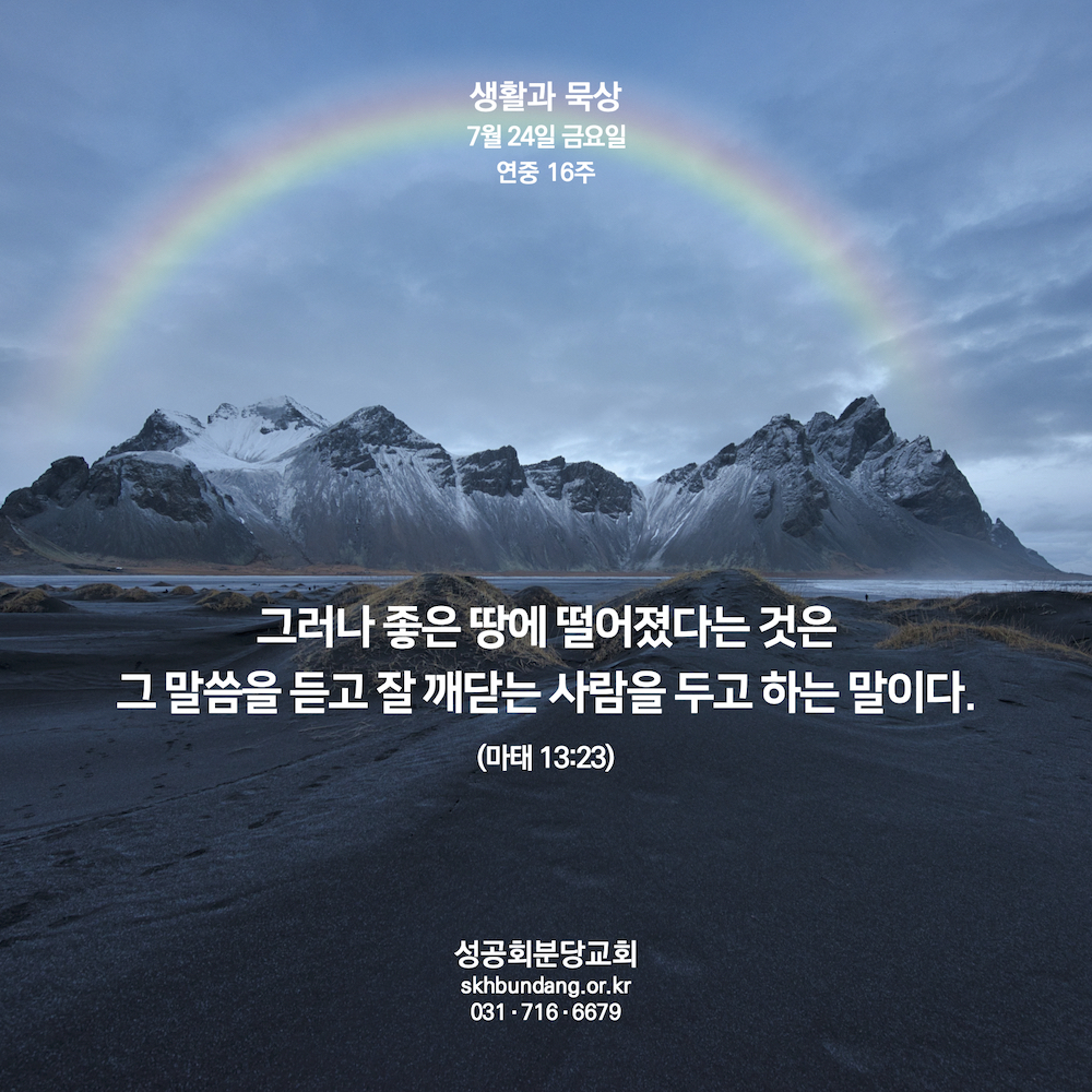 마음 밭도 밖에 있는 밭처럼 돌도 있고 풀도 자라기에 끊임없이 치워주고 때로는 물만 아니라 거름도 주어야 하는데 그 일에는 성실하지 않습니다. 그저 좋은 것들을 누가 가지고 있나 찾아 나설 뿐, 찾은 것을 귀중히 여기지 않습니다. 좋은 씨앗을 찾는 것도 중요하지만 내가 먼저 좋은 밭이 되어야겠습니다. 그 일은 한 번에 끝나는 미션이 아니라 내 삶의 지속적인 흐름으로 자리 잡혀야겠지요. 그게 바로 좋은 땅에 떨어졌다는 것 아닐까요.