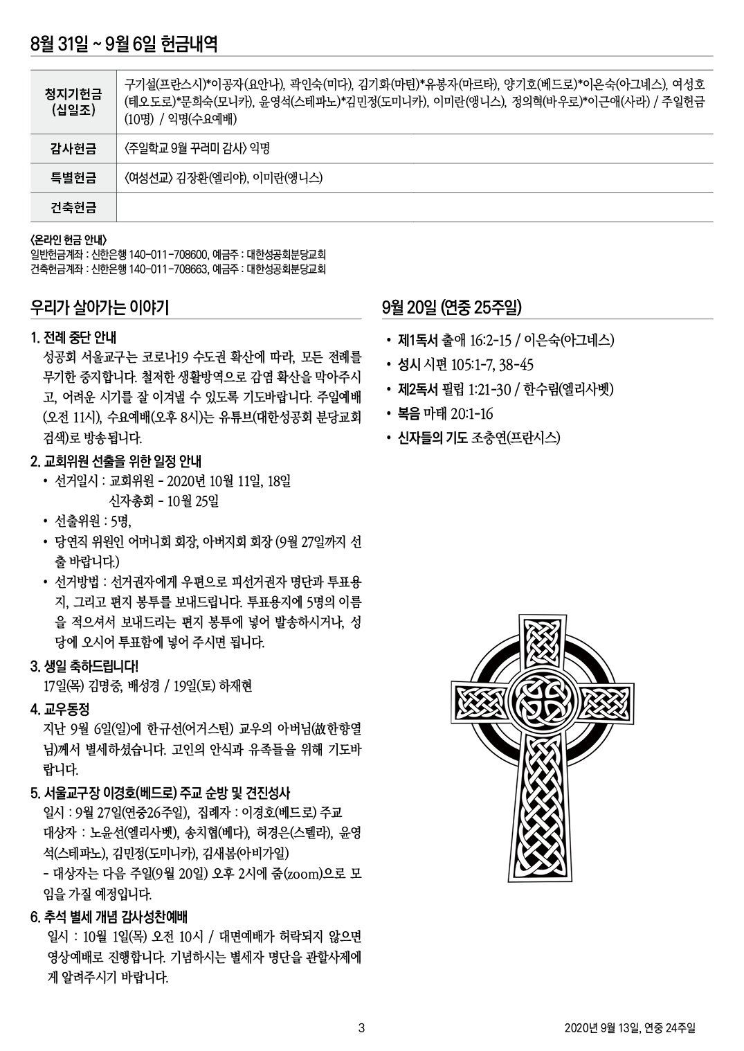 2020년 9월 13일, 연중 24주일