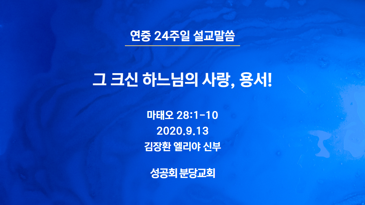 오늘 이 예배를 통해 나를 용서하시고 자녀 삼아 주신 하느님의 사랑에 대한 감사가 회복되기를 원합니다. 하여 용서하는 믿음으로 하느님의 사랑을 흘러 보내며, 모든 묶임으로부터 자유하고 행복한 삶을 살아가는 여러분이 되시기를 주님의 이름으로 축원합니다.