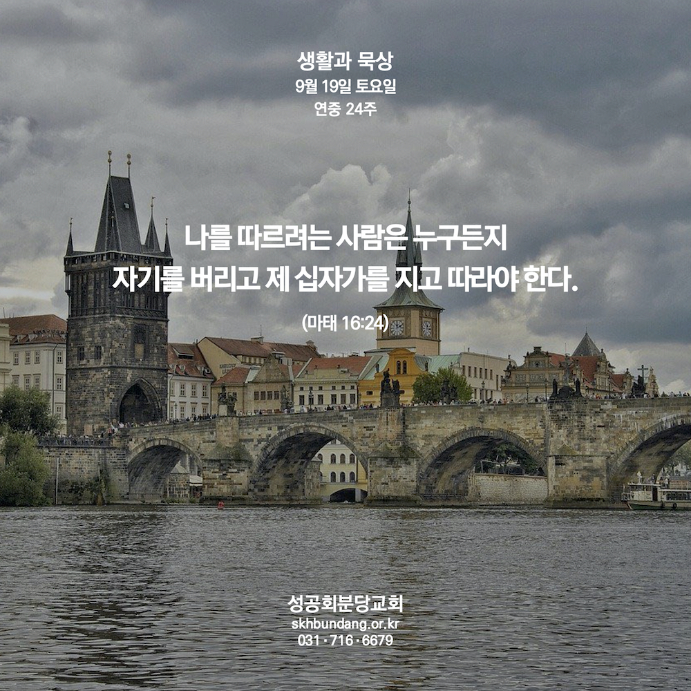 예수를 따르려는 사람은 자기를 버려야 한다고, 그래야 십자가를 질 수 있다는 뜻으로 다가옵니다. 지금의 내 습관과 생각을 멈춰야 내가 감당할 수 있는 내 자신이라는 십자가를 받아들일 수 있다는 말씀으로 다가옵니다. 나를 받아들이는 일이 왜 이렇게 힘든 것일까요? 주님과 함께 거하는 시간을 일분이라도 늘려가고자 지금 바로 제 생각과 행동을 멈춰봅니다.
