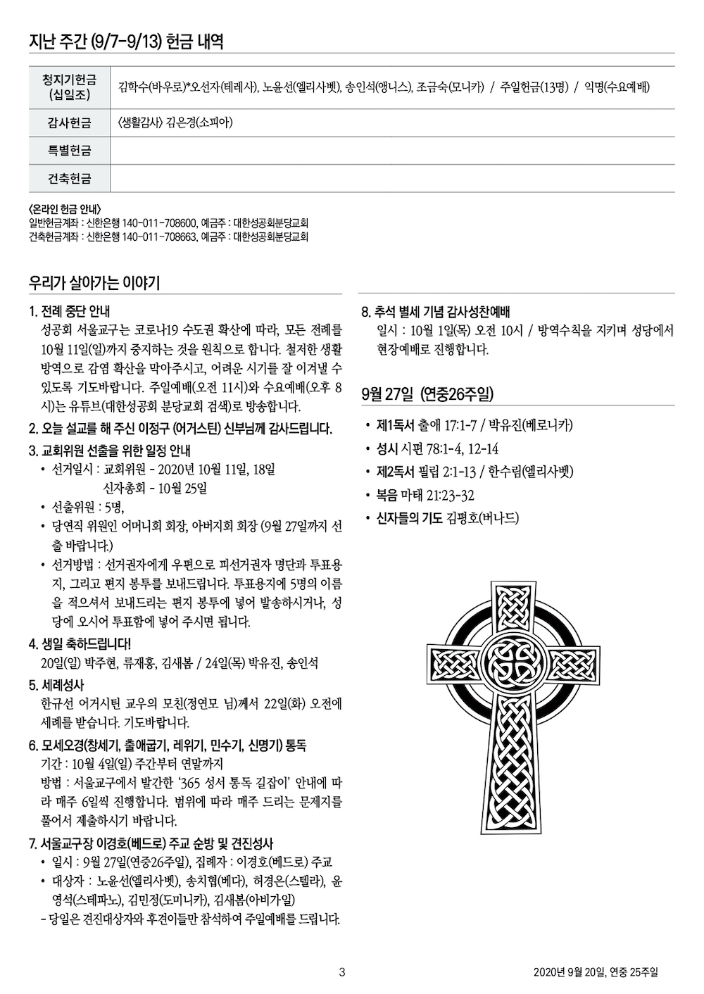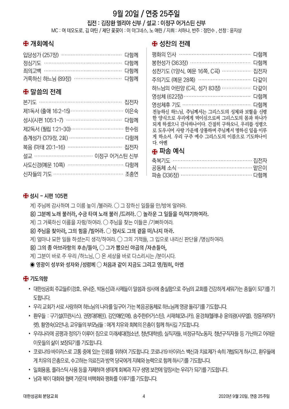 교회 주보 연중 25주일 by 분당교회 2020. 9. 20. 2020년 9월 20일, 연중 25주일 성공회 분당교회 주보 공유하기 게시글 관리 대한성공회 분당교회 '교회 주보' 카테고리의 다른 글 연중 27주일 (0) 2020.10.04 연중 26주일 (0) 2020.09.27 연중 24주일 (0) 2020.09.13 여성선교주일 (0) 2020.09.06 연중 22주일 (0) 2020.08.30 관련글 연중 27주일 연중 26주일 연중 24주일 여성선교주일 댓글