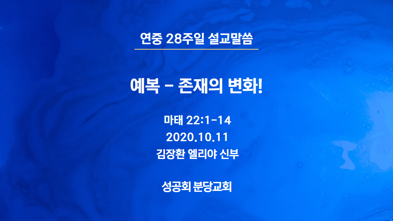 성경에서 혼인 잔치는 하느님 나라와 그 나라에서 누리는 기쁨을 상징합니다. 그래서 예수님은 2절에서 이렇게 말씀하십니다. 2절, “하늘나라는 어느 임금이 자기 아들의 혼인 잔치를 베푼 것에 비길 수 있다.