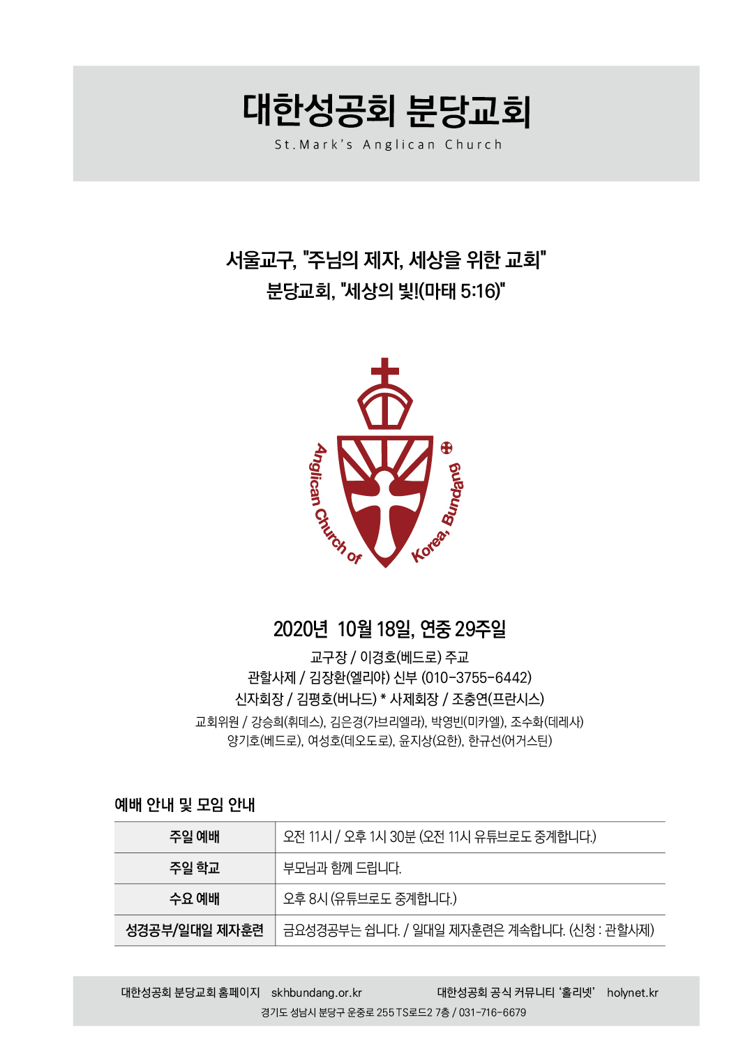 교회 주보 연중 29주일 by 분당교회 2020. 10. 18. 2020년 10월 18일, 연중 29주일 성공회 분당교회 주보 공유하기 게시글 관리 대한성공회 분당교회 '교회 주보' 카테고리의 다른 글 연중 31주일 (모든 성인의 날) (0) 2020.11.01 연중 30주일 (0) 2020.10.25 연중 28주일 (0) 2020.10.11 연중 27주일 (0) 2020.10.04 연중 26주일 (0) 2020.09.27 관련글 연중 31주일 (모든 성인의 날) 연중 30주일 연중 28주일 연중 27주일 댓글