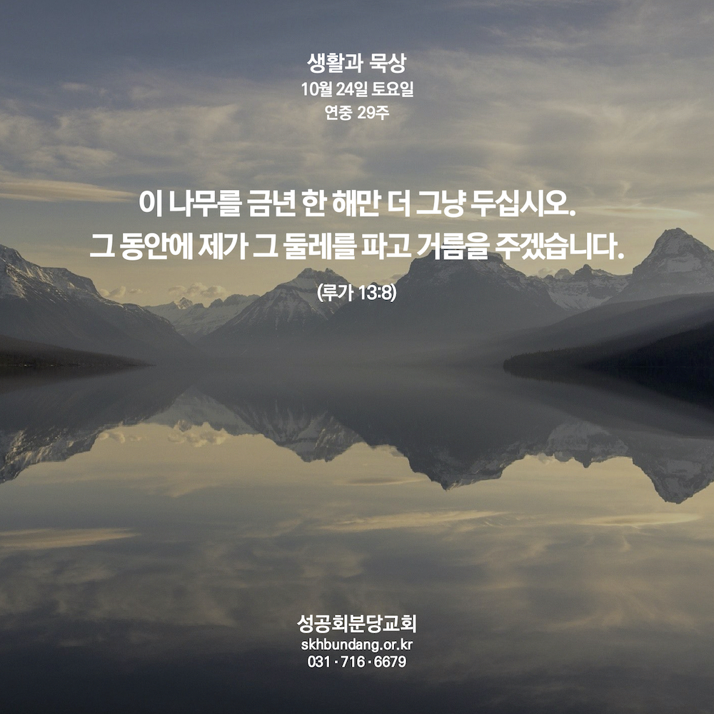 주인의 "아예 잘라버려라. 쓸데없이 땅만 썩힐 필요가 어디 있겠느냐?"는 저 말에 그 동안 동의하고 산 것입니다. 자신을 보살피지 않고 사랑하지 않았습니다. 자신을 흉보고 험담한 사람들과 함께 그들의 잣대를 들어 똑같이 흉을 보고 험담했습니다. 그렇지만 누가 뭐라 해도 자기 삶에 대한 결정권은 자기가 가지고 있다는 마지막 포도원지기의 말이 우리가 지녀야 하는 삶의 자세로 보입니다. "그냥 두십시오. 그 동안에 제가 그 둘레를 파고 거름을 주겠습니다." 저 자신을 사랑하지 못한 모습과 어디로부터 이러한 삶의 자세와 태도가 생기게 되었는지 돌아봅니다.
