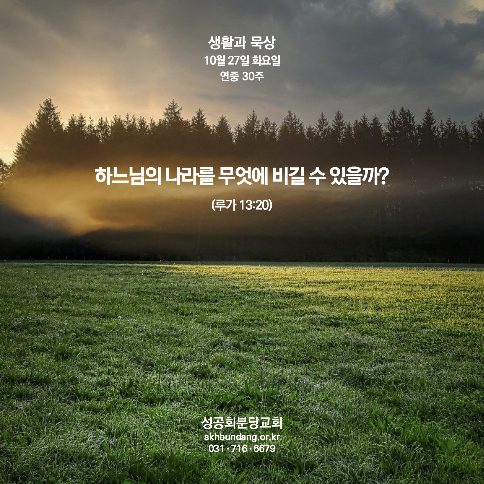 19 어떤 사람이 겨자씨 한 알을 밭에 뿌렸다. 겨자씨는 싹이 돋고 자라서 큰 나무가 되어 공중의 새들이 그 가지에 깃들였다. 하느님의 나라는 이 겨자씨와 같다.”