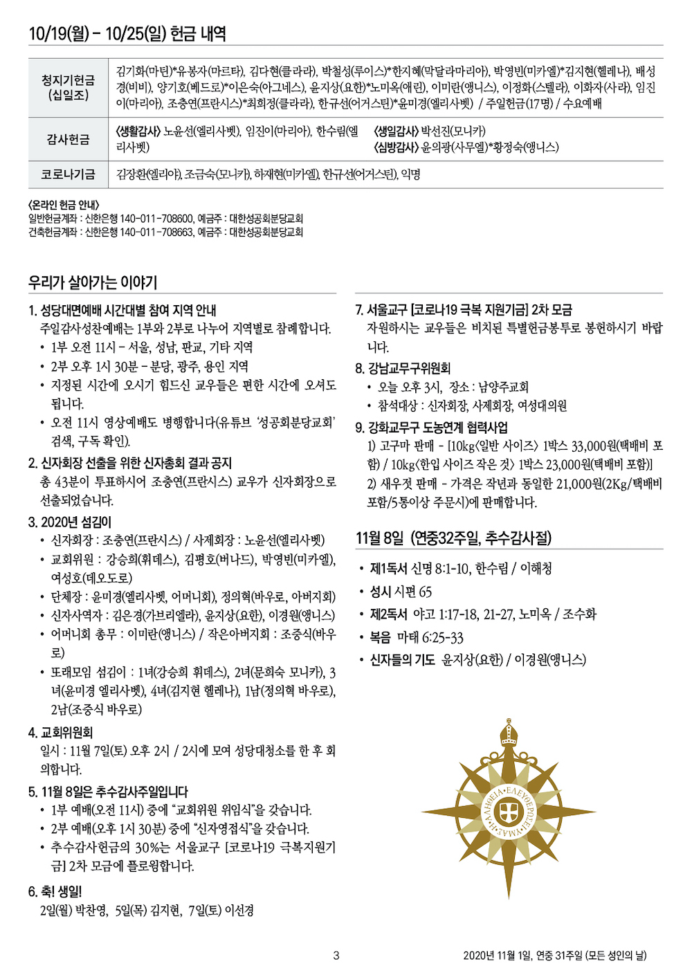 교회 주보 연중 31주일 (모든 성인의 날) by 푸드라이터 2020. 11. 1. 2020년 11월 1일, 연중 31주일 (모든 성인의 날) 성공회 분당교회 주보 공유하기 게시글 관리 대한성공회 분당교회 '교회 주보' 카테고리의 다른 글 연중 33주일 (0) 2020.11.15 추수감사주일 (0) 2020.11.08 연중 30주일 (0) 2020.10.25 연중 29주일 (0) 2020.10.18 연중 28주일 (0) 2020.10.11 관련글 연중 33주일 추수감사주일 연중 30주일 연중 29주일 댓글
