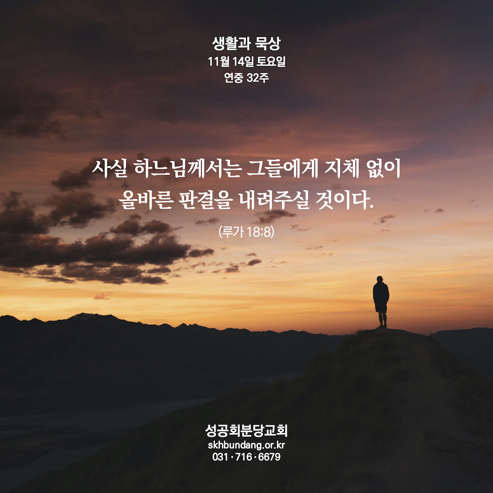 자주 까먹는 사실이 있습니다. 하느님께서는 우리의 소원을 들어주고 이루어주시는 분이 아니라 '올바른 판결'을 내리시는 분이라는 것. 언제나 기도하고 용기를 잃지 말라는 주님의 위로는 바로 그 과부와 같이 힘겹고 억울한 이들을 향해 열려 있다고 믿습니다. 하느님 나라를 위해 정직하게 애쓰고 수고하는 이들은 지금도 하느님의 올바른 판결을 고대합니다.