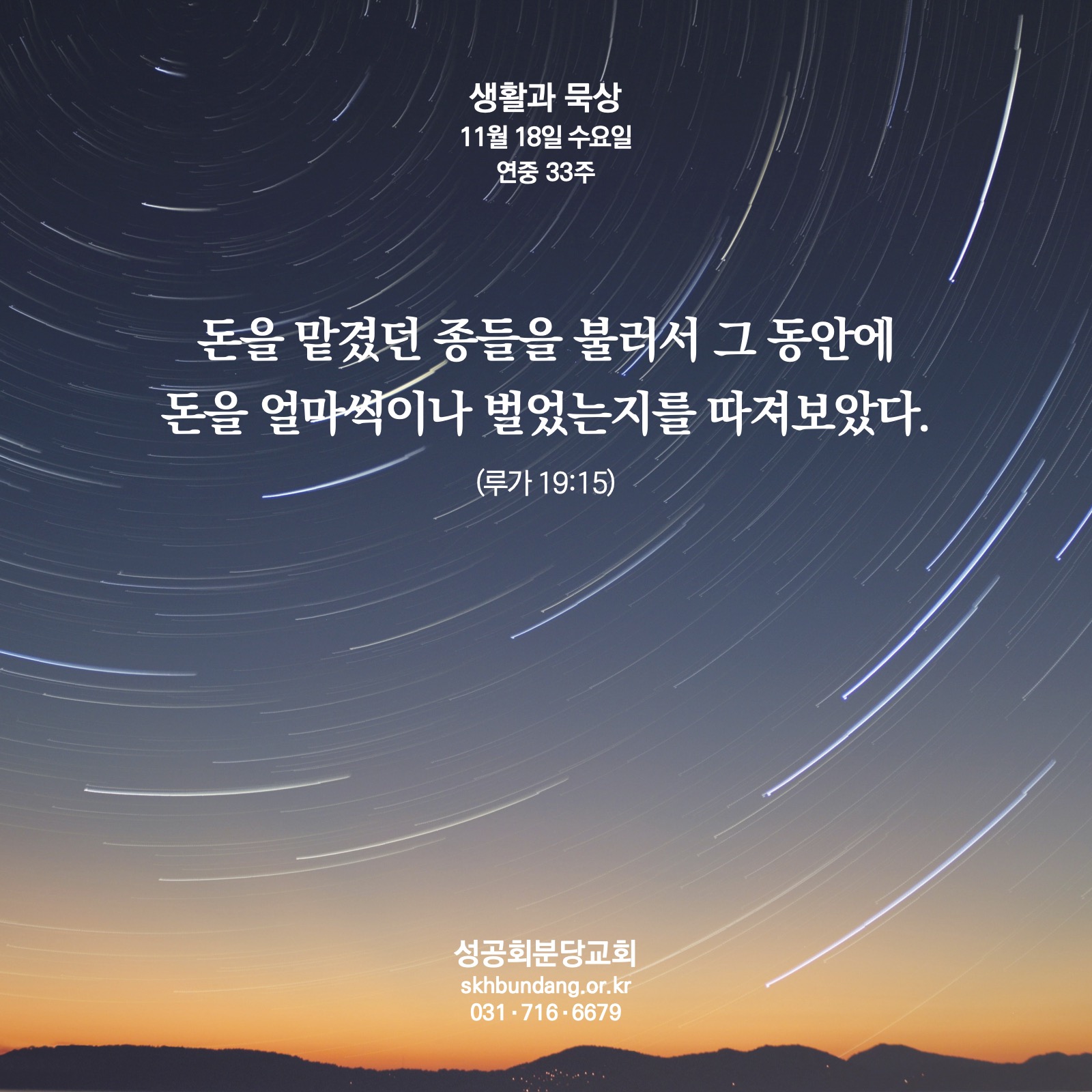 17 주인은 ‘잘 했다. 너는 착한 종이로구나. 네가 지극히 작은 일에 충성을 다했으니 나는 너에게 열 고을을 다스리게 하겠다.’ 하며 칭찬하였다.