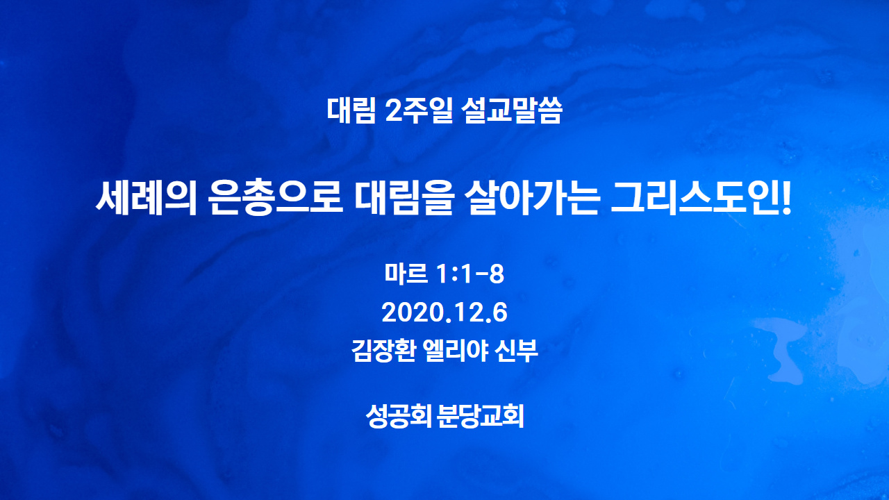 포로에서 귀환한 이스라엘은 하느님 나라를 이룰 구원자 메시아를 기다리며 살게 되었습니다. 그리고 긴 기다림 끝에 요한이 나타나 이사야가 선포한 회개를 다시 선포하고 있습니다. 마르 1:4, 세례자 요한이 광야에 나타나 “회개하고 세례를 받아라. 그러면 죄를 용서받을 것이다.” 하고 선포하였다.