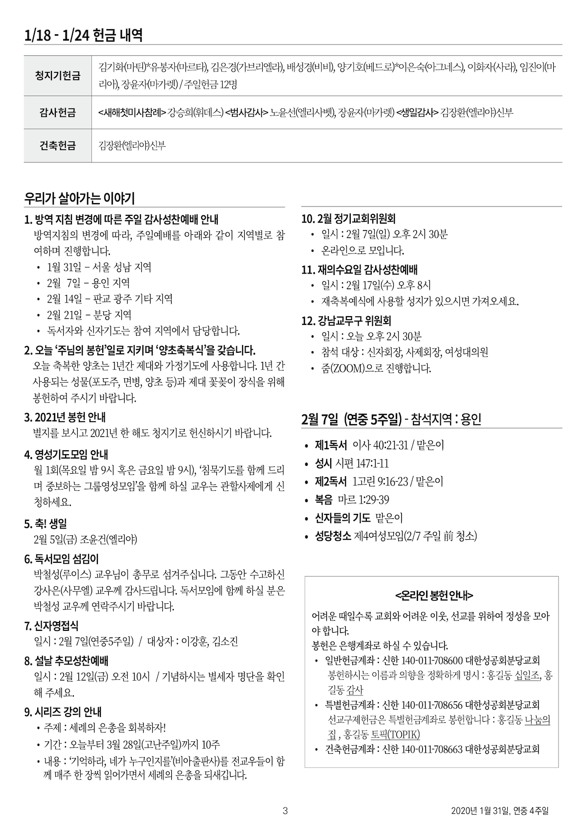 교회 주보 연중 4주일 by 분당교회 2021. 1. 31. 2021년 1월 31일, 연중 4주일 성공회 분당교회 주보 공유하기 게시글 관리 대한성공회 분당교회 '교회 주보' 카테고리의 다른 글 연중 6주일 (0) 2021.02.14 연중 5주일 (0) 2021.02.07 연중 3주일 (0) 2021.01.24 연중 2주일 (0) 2021.01.17 주의세례일 (0) 2021.01.10 관련글 연중 6주일 연중 5주일 연중 3주일 연중 2주일 댓글