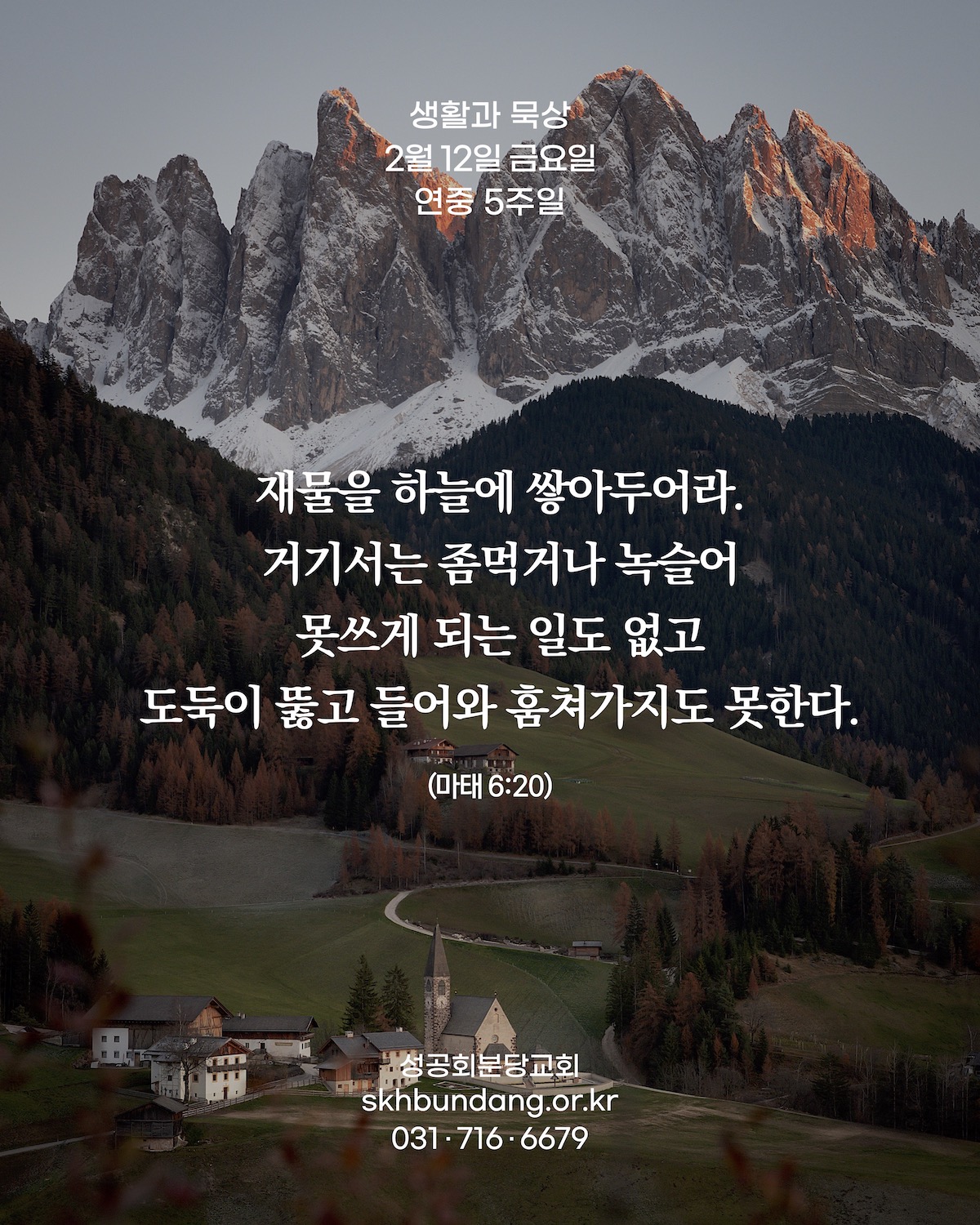 19 “재물을 땅에 쌓아두지 마라. 땅에서는 좀먹거나 녹이 슬어 못쓰게 되며 도둑이 뚫고 들어와 훔쳐간다.