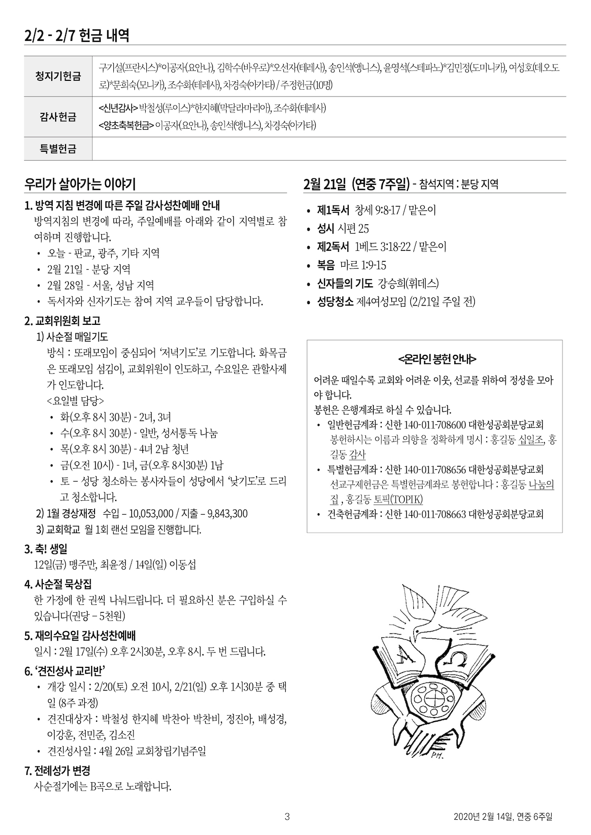 교회 주보 연중 6주일 by 분당교회 2021. 2. 14. 2021년 2월 14일, 연중 6주일 성공회 분당교회 주보 공유하기 게시글 관리 대한성공회 분당교회 '교회 주보' 카테고리의 다른 글 사순 2주일 (0) 2021.02.28 사순 1주일 (0) 2021.02.21 연중 5주일 (0) 2021.02.07 연중 4주일 (0) 2021.01.31 연중 3주일 (0) 2021.01.24 관련글 사순 2주일 사순 1주일 연중 5주일 연중 4주일 댓글