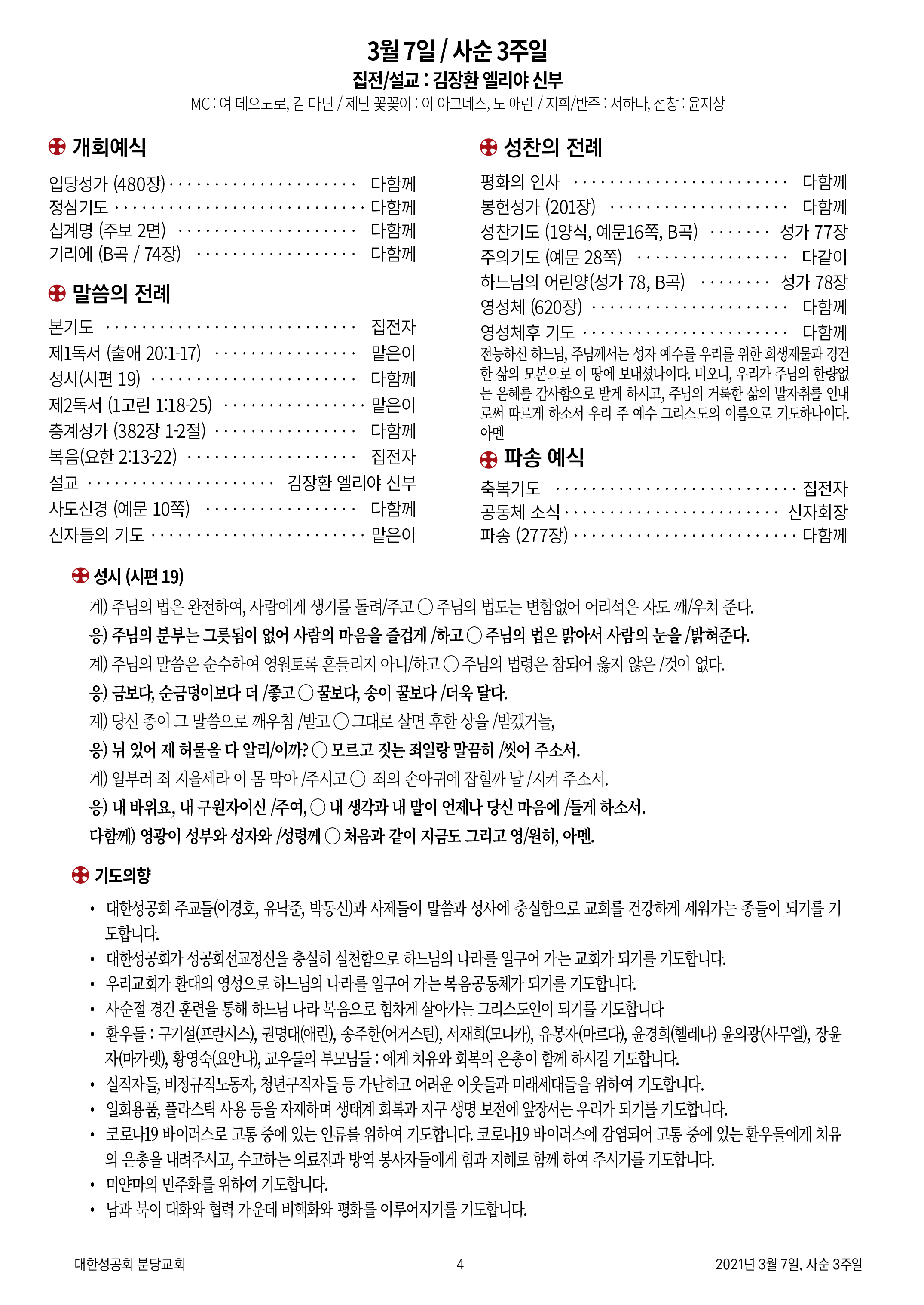 교회 주보 사순 3주일 by 분당교회 2021. 3. 7. 2021년 3월 7일, 사순 3주일 성공회 분당교회 주보 공유하기 게시글 관리 대한성공회 분당교회 '교회 주보' 카테고리의 다른 글 사순 5주일 (0) 2021.03.21 사순 4주일 (0) 2021.03.14 사순 2주일 (0) 2021.02.28 사순 1주일 (0) 2021.02.21 연중 6주일 (0) 2021.02.14 관련글 사순 5주일 사순 4주일 사순 2주일 사순 1주일 댓글