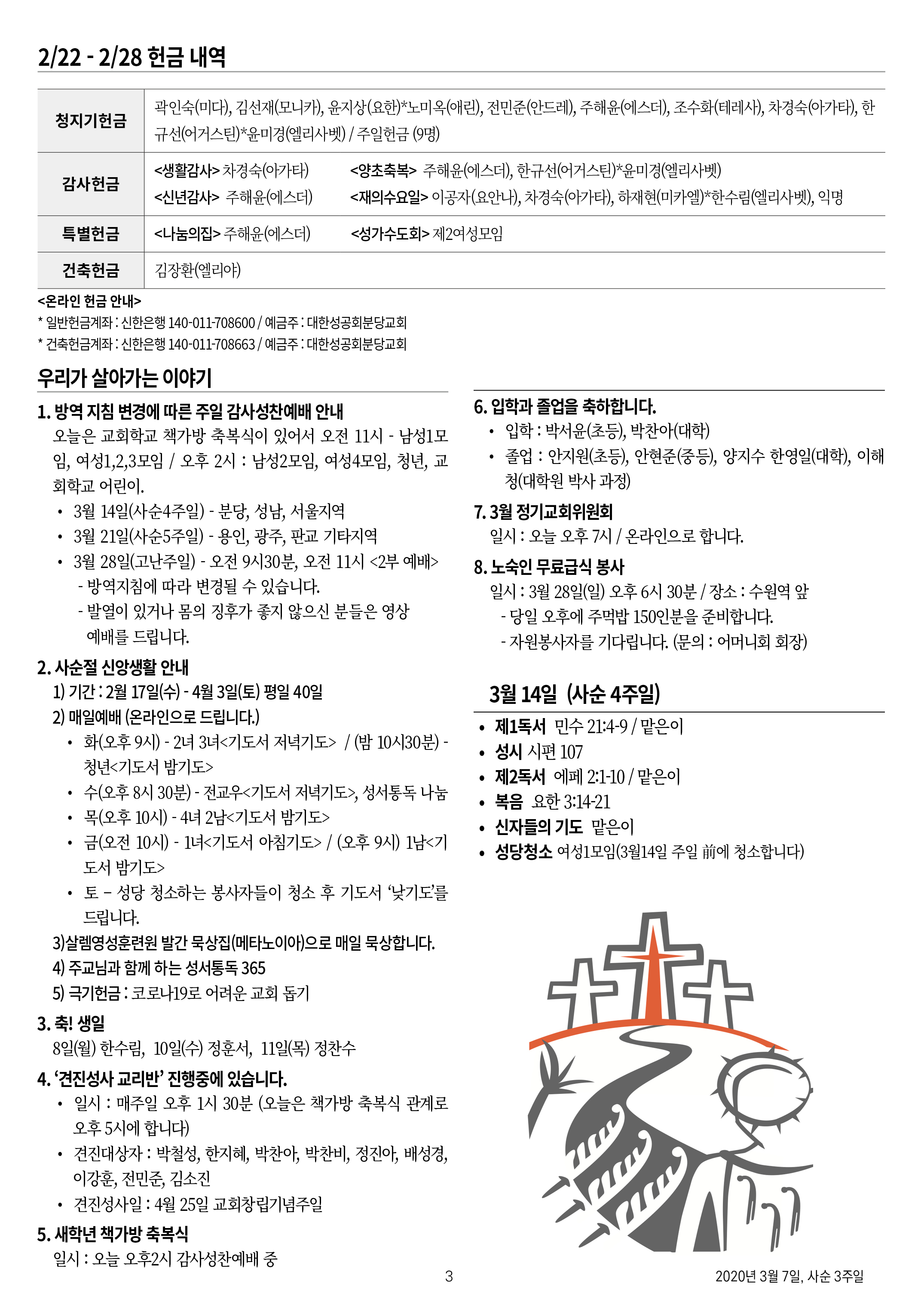 교회 주보 사순 3주일 by 분당교회 2021. 3. 7. 2021년 3월 7일, 사순 3주일 성공회 분당교회 주보 공유하기 게시글 관리 대한성공회 분당교회 '교회 주보' 카테고리의 다른 글 사순 5주일 (0) 2021.03.21 사순 4주일 (0) 2021.03.14 사순 2주일 (0) 2021.02.28 사순 1주일 (0) 2021.02.21 연중 6주일 (0) 2021.02.14 관련글 사순 5주일 사순 4주일 사순 2주일 사순 1주일 댓글