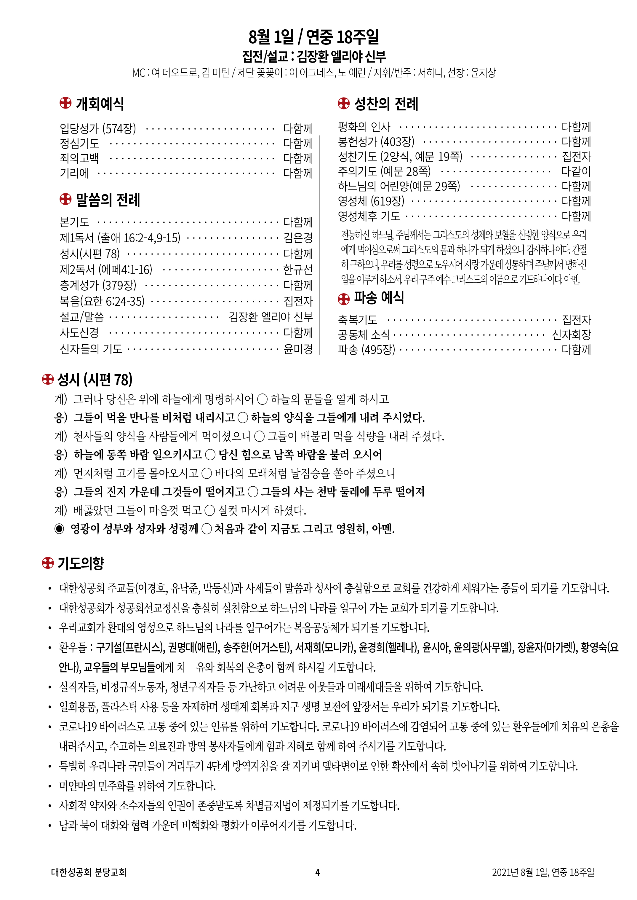 교회 주보 연중 18주일 by 분당교회 2021. 8. 1. 2021년 8월 1일 연중 18주일 교회주보 공유하기 게시글 관리 대한성공회 분당교회 '교회 주보' 카테고리의 다른 글 평화통일주일 (0) 2021.08.15 주의변모주일 (0) 2021.08.09 연중 16주일 (0) 2021.07.18 연중 15주일 (0) 2021.07.11 맥추감사주일 (0) 2021.07.04 관련글 평화통일주일 주의변모주일 연중 16주일 연중 15주일 댓글