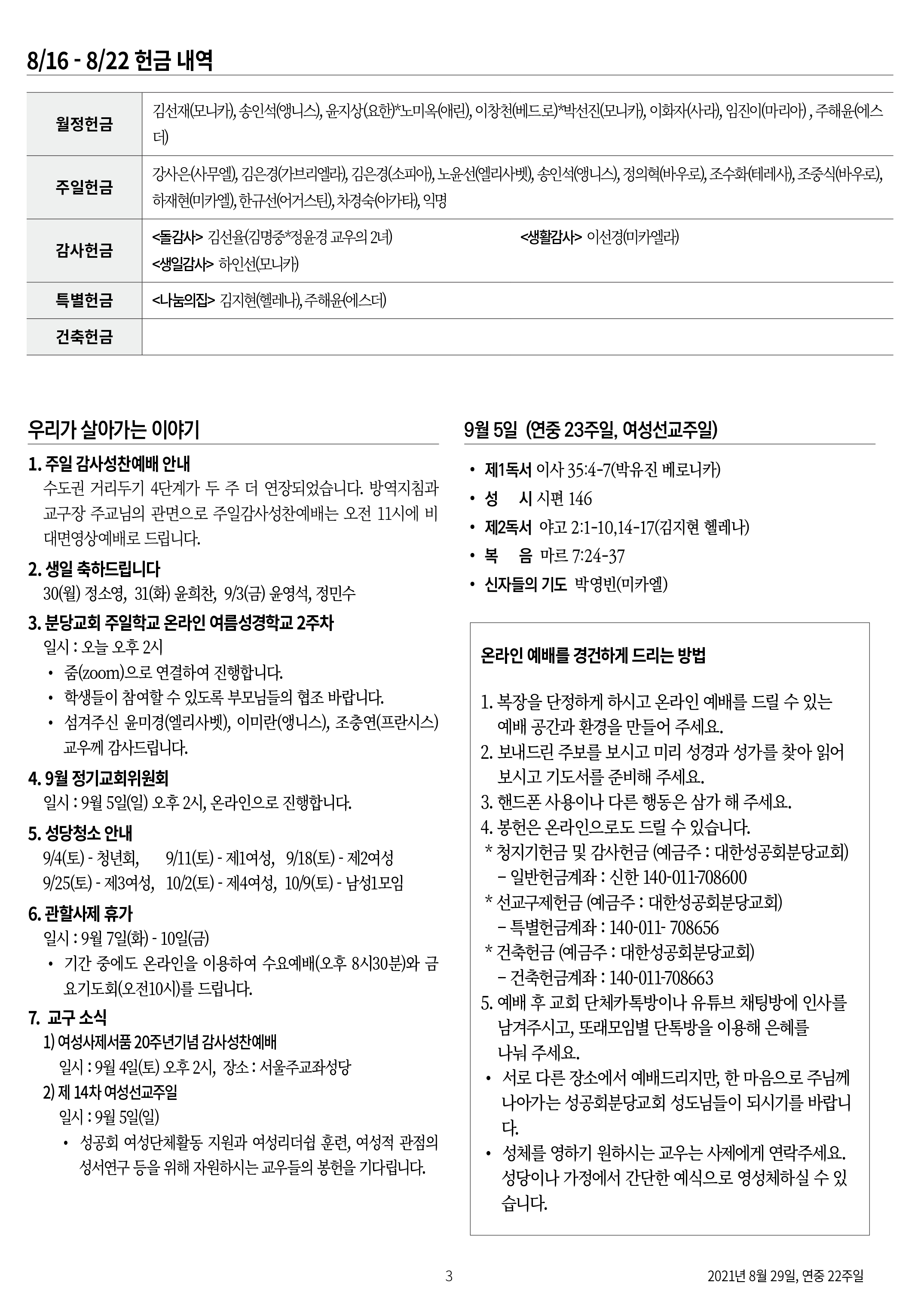 연중 22주일 교회주보