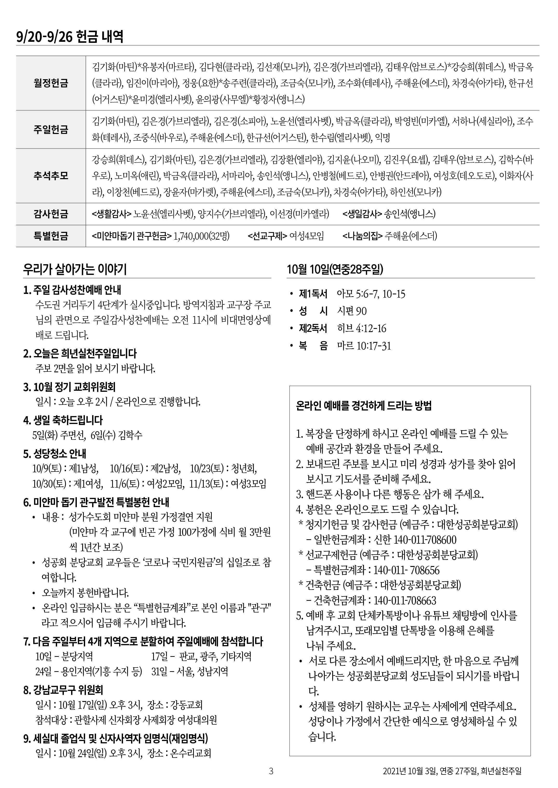 교회 주보 희년실천주일 by 분당교회 2021. 10. 3. 2021년 10월 3일 연중 27주일 희년실천주일 공유하기 게시글 관리 대한성공회 분당교회 '교회 주보' 카테고리의 다른 글 연중 29주일 (0) 2021.10.18 연중 28주일 (0) 2021.10.10 연중26주일 (0) 2021.09.26 연중 25주일 (0) 2021.09.19 연중 24주일 (0) 2021.09.12 관련글 연중 29주일 연중 28주일 연중26주일 연중 25주일 댓글