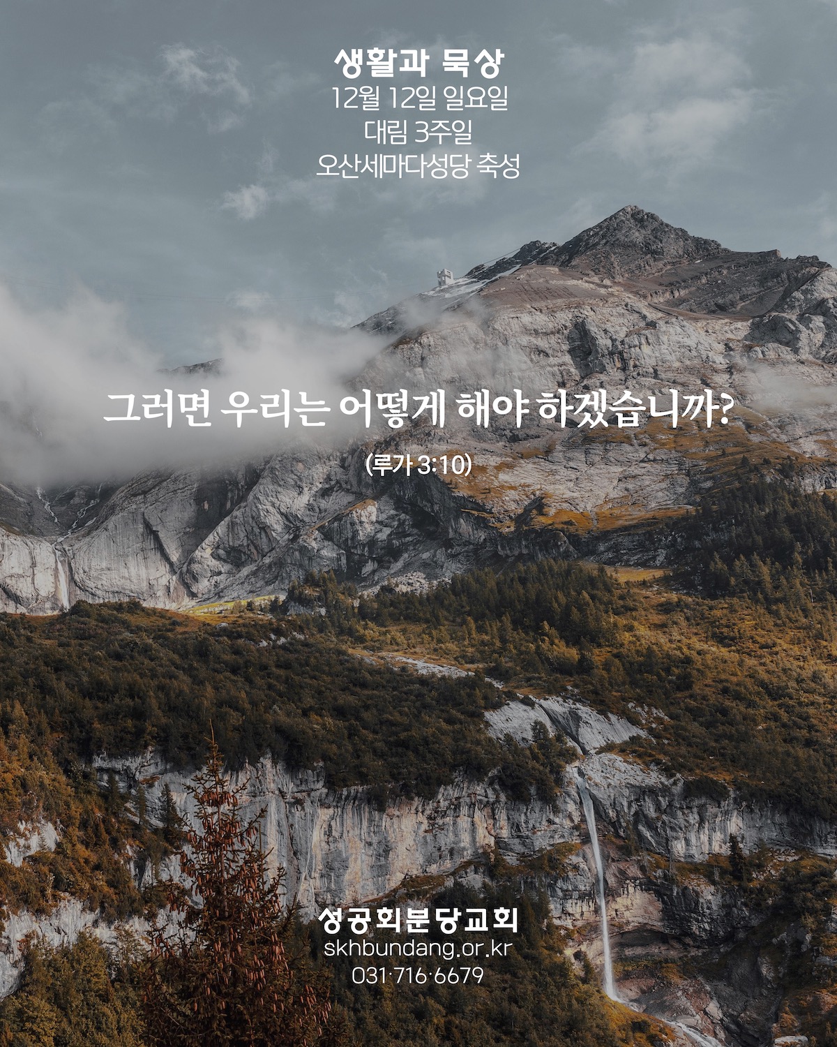 묵상카드 자기 본분에 충실하기 by 분당교회 2021. 12. 12. 2021년 12월 12일 일요일 대림 3주일 루가 3:7 - 18 <묵상기도> 주변을 기웃거리지 않고, 주님이 주신 내 소명에 충실할 수 있게 하소서. 공유하기 게시글 관리 대한성공회 분당교회 '묵상카드' 카테고리의 다른 글 아들의 마음 (0) 2021.12.14 인정과 외면 사이 (0) 2021.12.13 그를 알아보았나요 (0) 2021.12.11 어느 할머니의 사랑과 죽음 그 쓸쓸함 (0) 2021.12.10 하늘나라의 사람들 (0) 2021.12.09 관련글 아들의 마음 인정과 외면 사이 그를 알아보았나요 어느 할머니의 사랑과 죽음 그 쓸쓸함 댓글