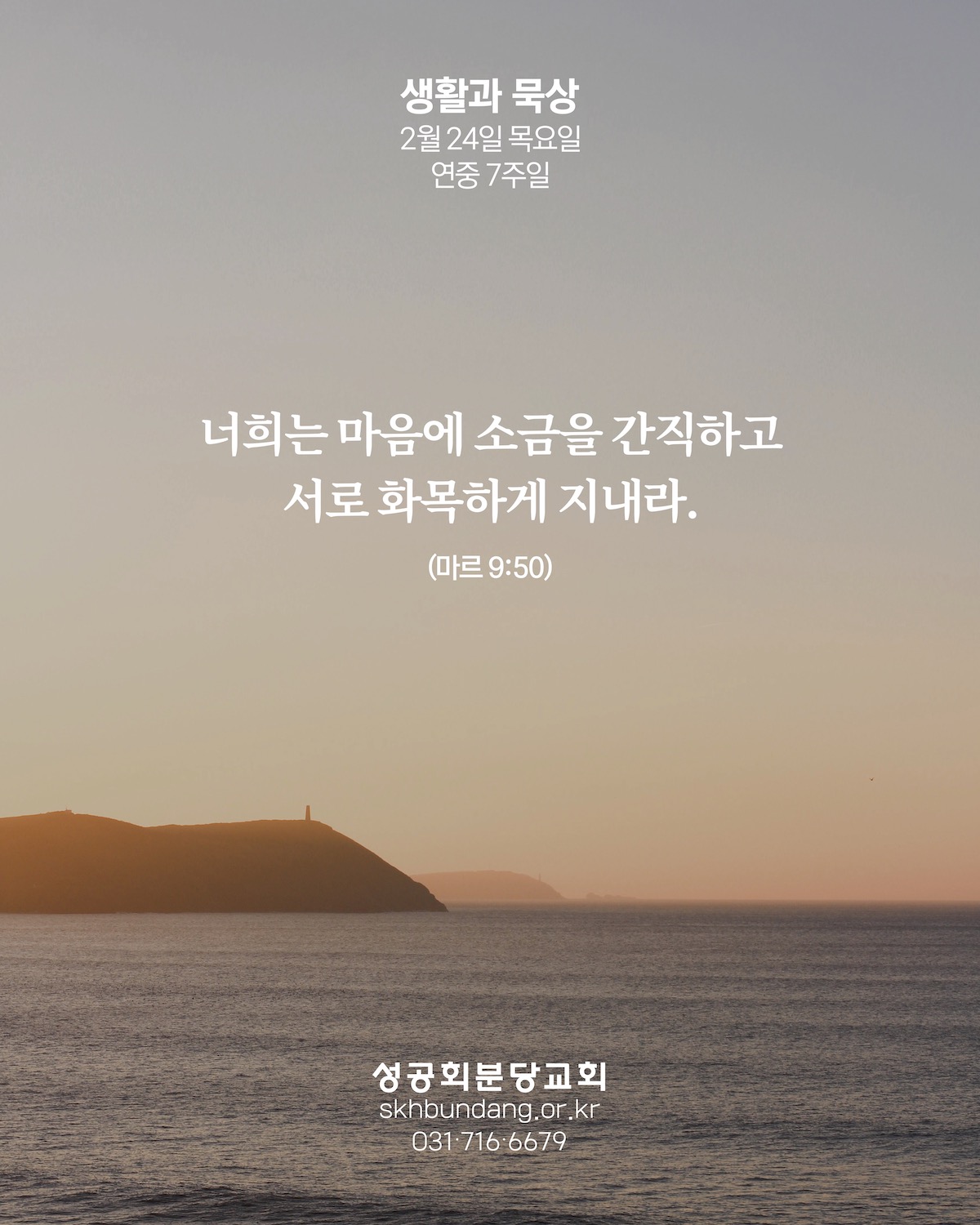 묵상카드 더하지 않은 것 by 분당교회 2022. 2. 24. 2022년 2월 24일 목요일 연중 7주일 마르 9:41-50 <묵상기도> 주님, 제가 죄를 짓거든 죄에 죄를 더하지 않고 주님의 은총 가운데 용서를 구하게 하소서. 공유하기 게시글 관리 대한성공회 분당교회 '묵상카드' 카테고리의 다른 글 어린이를 어떻게 모실까 (0) 2022.02.26 더하지 않은 것 (0) 2022.02.25 지지도 (0) 2022.02.23 반대와 신념 (0) 2022.02.22 새로운 깨달음 (0) 2022.02.21 관련글 어린이를 어떻게 모실까 더하지 않은 것 지지도 반대와 신념 댓글